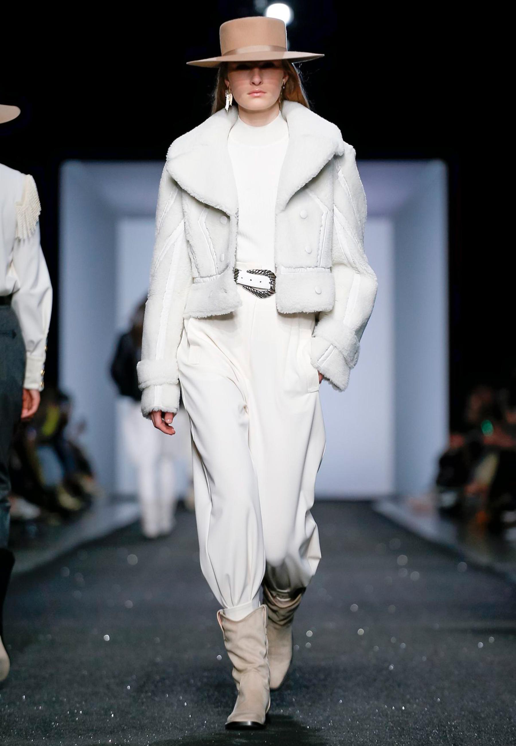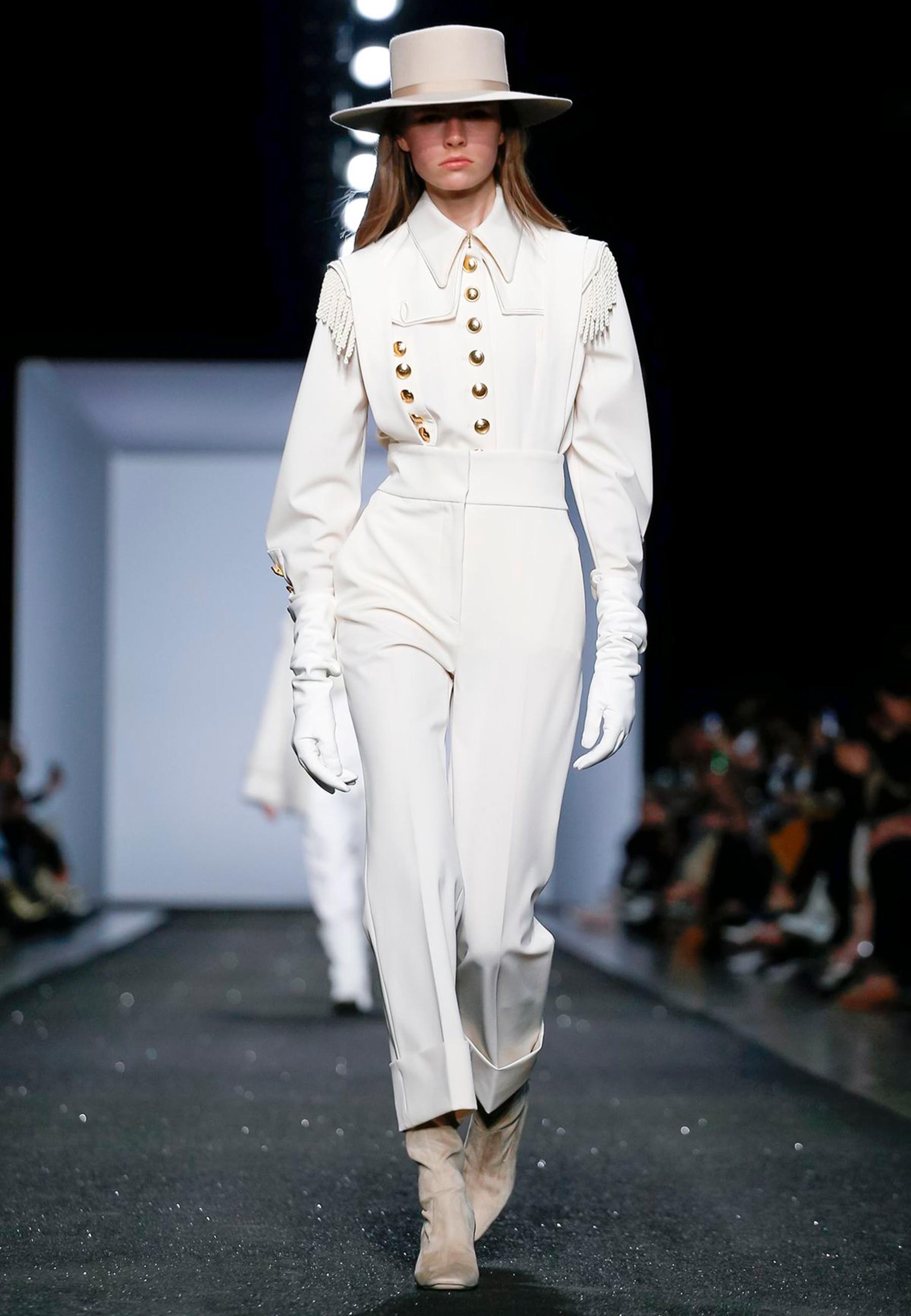 E o hit da vez é o look all white, que pontuo várias entradas do desfile que aconteceu nesta quarta-feira (20.02), na semana de moda de Milão. Truque de styling? Use o look todo branco com botas e chapéu em tons de marrom.
