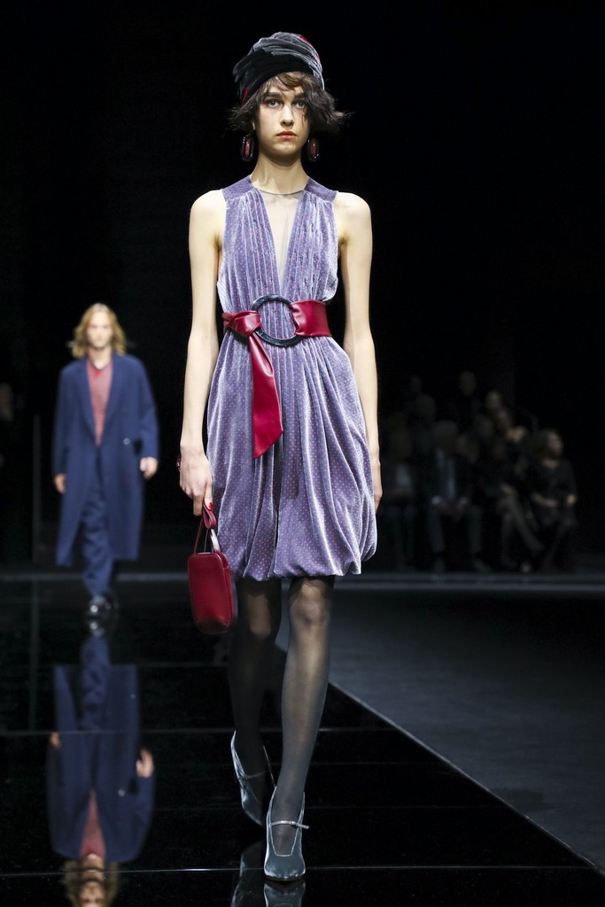 Em uma coletiva sobre a coleção, Giorgio Armani confessou que o motivo pelo qual suas roupas sempre tem toques orientais é o fato de acreditar que essa cultura é rica em inspirações, de maneira inesgotável. No pre-fall 2020 não foi diferente e alguns detalhes denunciavam na onde o designer havia se inspirado.