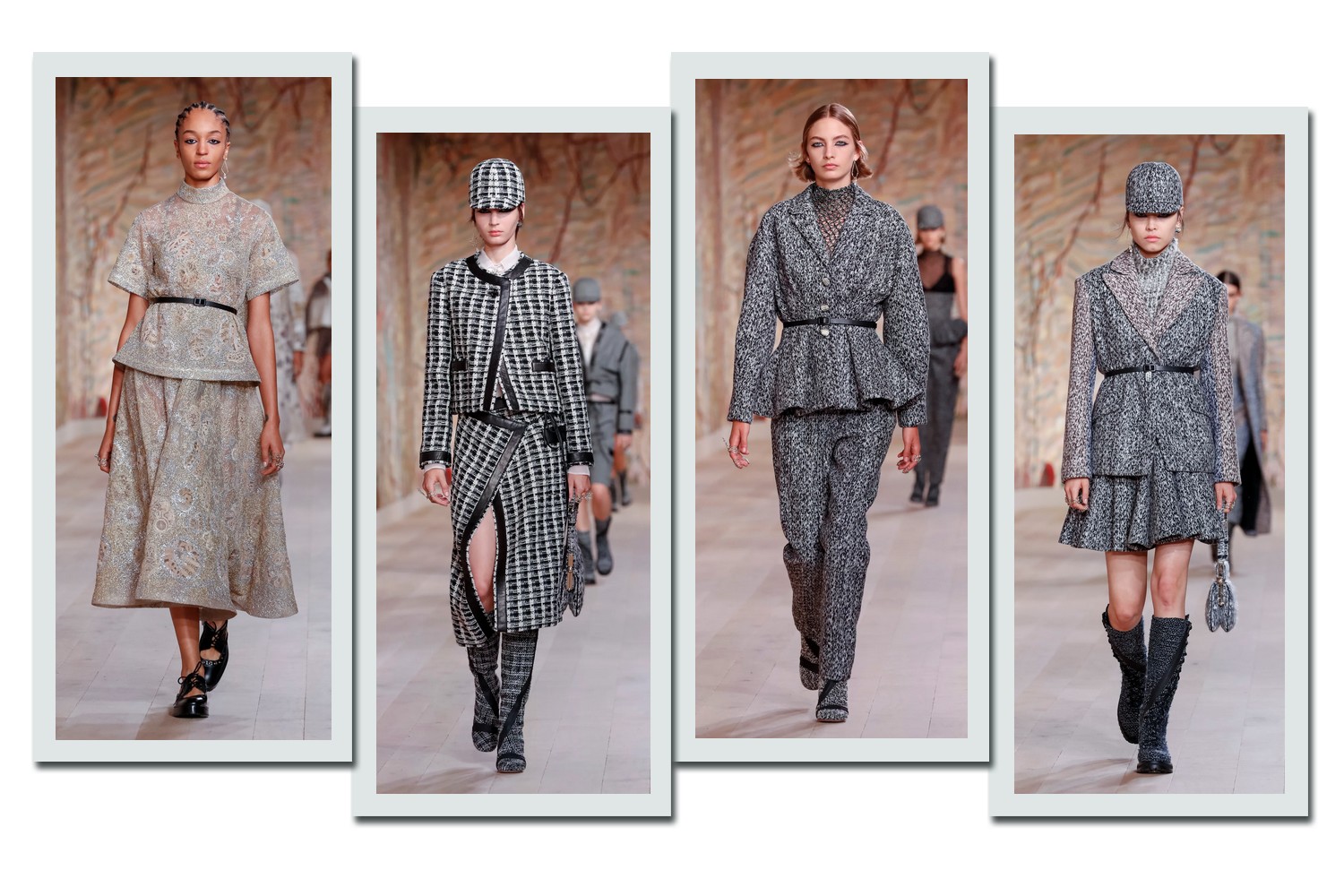 A temporada de inverno 2022 começou e a Dior apresentou uma coleção inspirada no bordado como forma de subversão, em tweeds mistos, em vestidos com fluidos, mas sempre com um toque original, além de casacos com texturas e dimensões diferentes e gráficas. Um retorno à presença física implica chamar a atenção para materiais tácteis, e Maria Grazia Chiuri não poupou esforços. Gaze de seda, plumas, organza de seda, rendas guipure e cachemiras encheram os olhos da plateia.