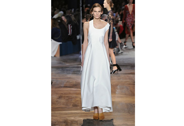 Quando Raf Simons decidiu deixar a Dior, em outubro de 2015, a coleção de verão 2016 de alta-costura já estava em fase de desenvolvimento. Assim, o que vimos hoje na passarela é uma especie de continuação de ideias. Estamos falando das novas propostas mais femininas e sensuais até da famosa alfaiataria da maison, nas referências dos trajes do século 18 e 19 e numa certa obsessão por repensar formas e proporções sobre o corpo da mulher. Aqui elas aparecem algo fora do lugar, como as alças deslocados para o lado ou os decote ombro a ombro, que dão impressão de um quase despir.