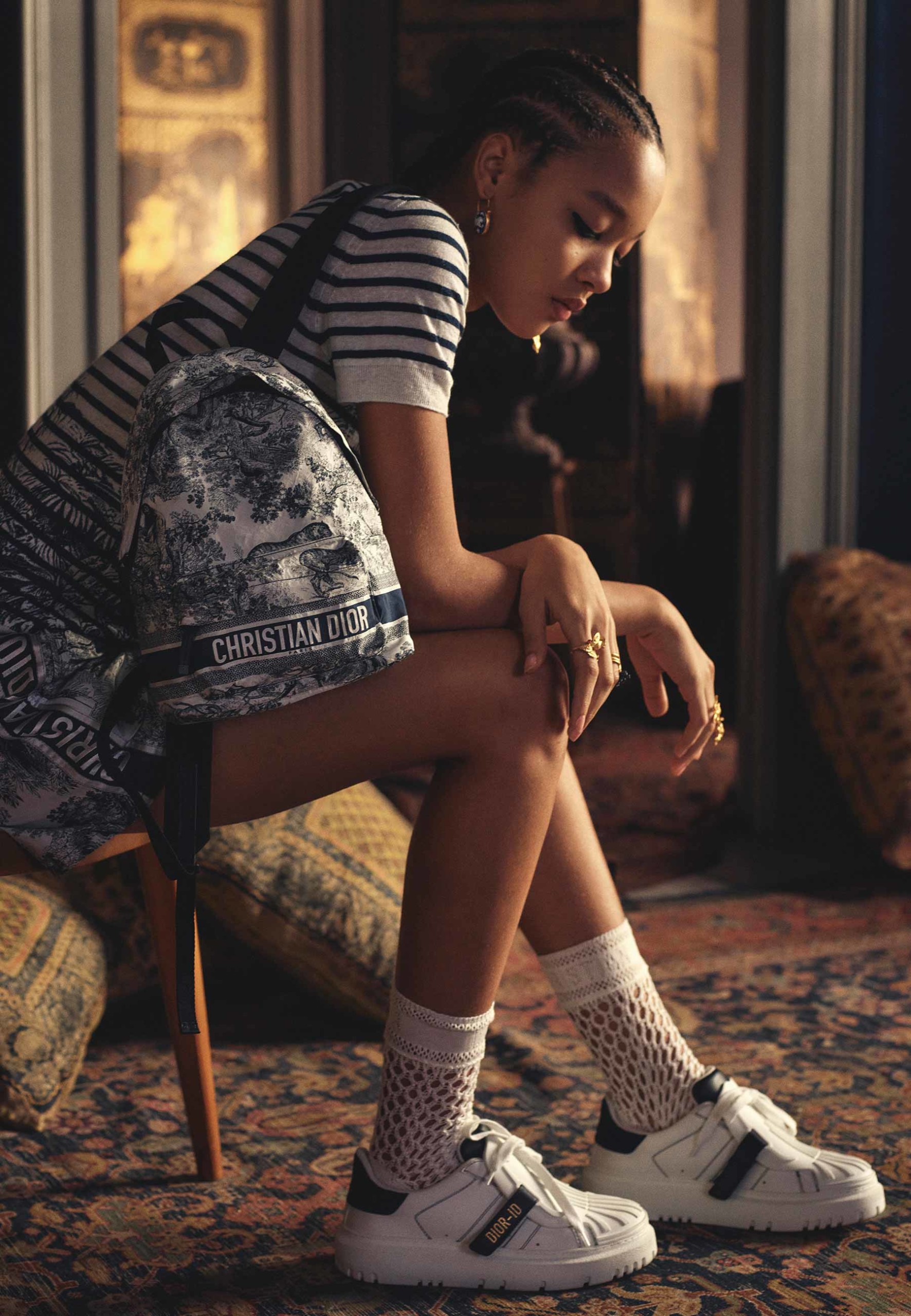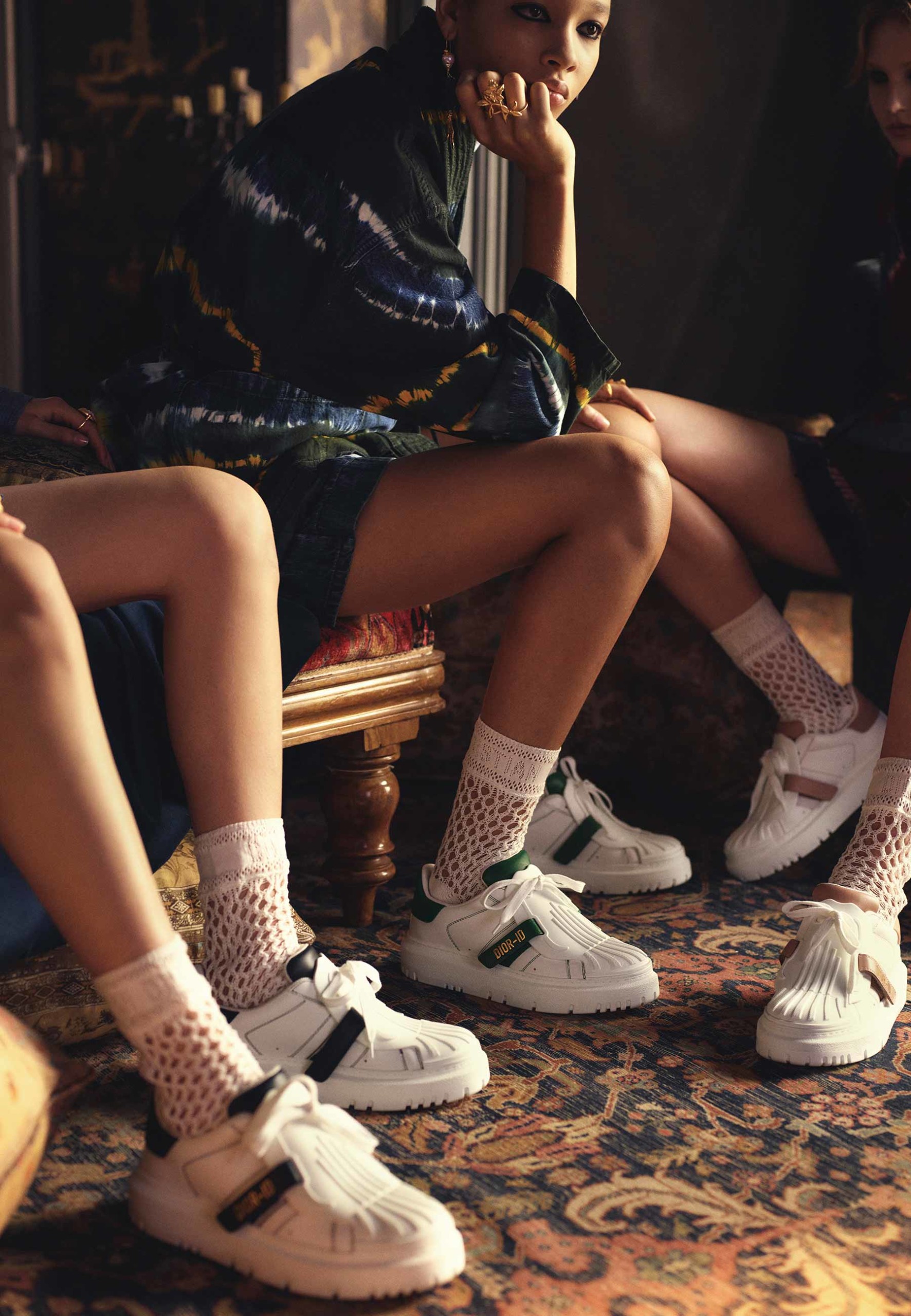 Maria Grazia Chiuri reinventa os tênis “Dior-ID” com versões em dois tons. Adornados com detalhes texturizados sutis, os modelos mais recentes da Dior são confeccionados em couro branco pontuado com uma assinatura dourada, eles se diferenciam por suas inserções contrastantes em azul escuro, bege, verde ou vermelho.