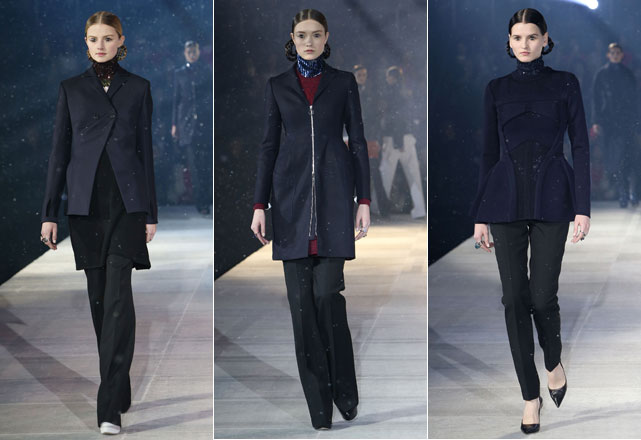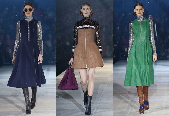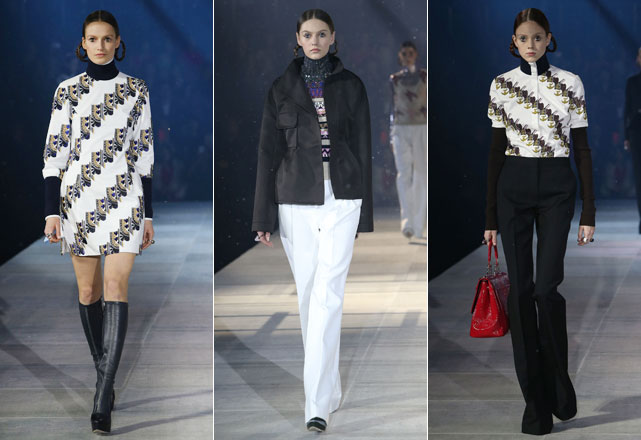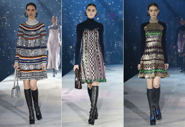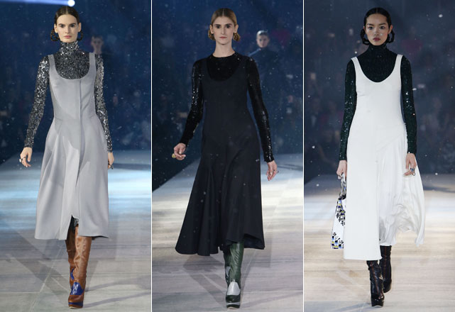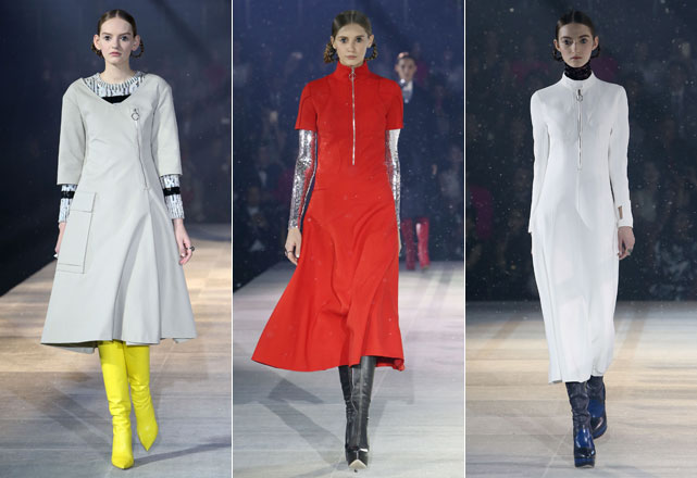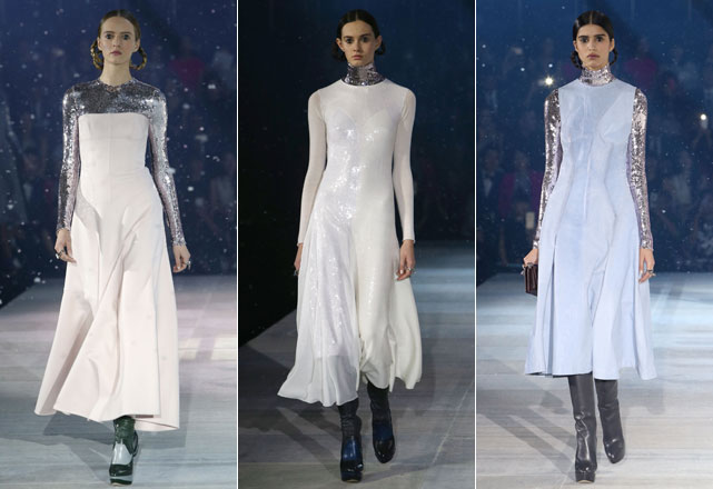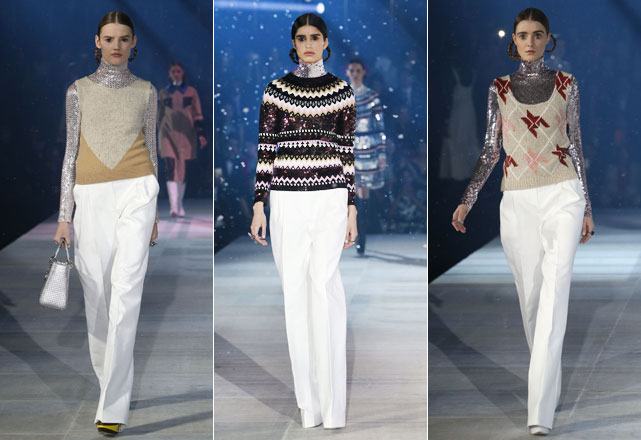 Conceitos a parte, o que marca essa coleção é seu alto grau utilitário. Claro, um utilitarismo muito glamouroso. É que Raf é um daqueles estilistas que realmente pensam moda – e seu impacto em nossas vidas. Justamente por isso, tem usados as coleções de meia-estação (pre-fall e resort) para apresentar roupas que realmente façam a diferença no dia a dia. Roupas para serem vestidas (e vividas), para além de coquetéis e tapetes vermelhos. Daí os maxibolsos, os zíperes e uma esperta escolha de tecidos, capaz de migrar para qualquer situação. A ideia é prática, mas a execução primorosa. E o melhor exemplo vem nos clássicos tricôs, com aparência retrô, mas projetados para o futuro com as tramas que misturam pequenas peças metálicas em sua composição.