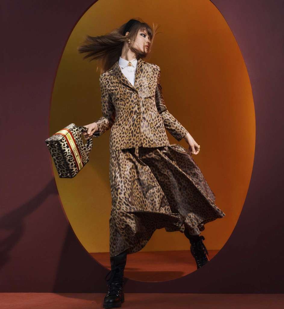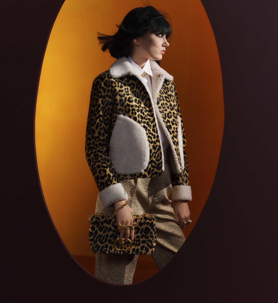 Maria Grazia Chiuri mais uma vez se baseia no motivo do leopardo Mizza, criado em homenagem a Mizza Bricard, a musa de Christian Dior, na coleção de inverno da Dior.