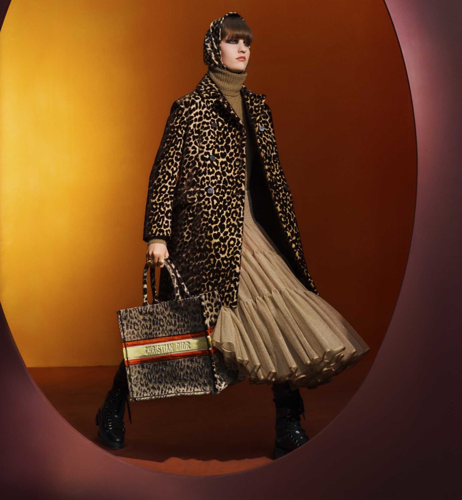Celebrando a graça felina, este design arrojado – disponível em tom sobre tom, natural, cinza e preto – realça looks totais e combinações. As peças desta temporada, como lenços, gabardinas, saias e vestidos, são adornadas com a print, que também aparece nas bolsas Lady D-Lite, Dior Book Tote, Dior Caro e Saddle, além de sapatos Dior Granville e botas DiorAlps. Como toques finais, os chapéus e boinas Mizza arrematam a coleção.