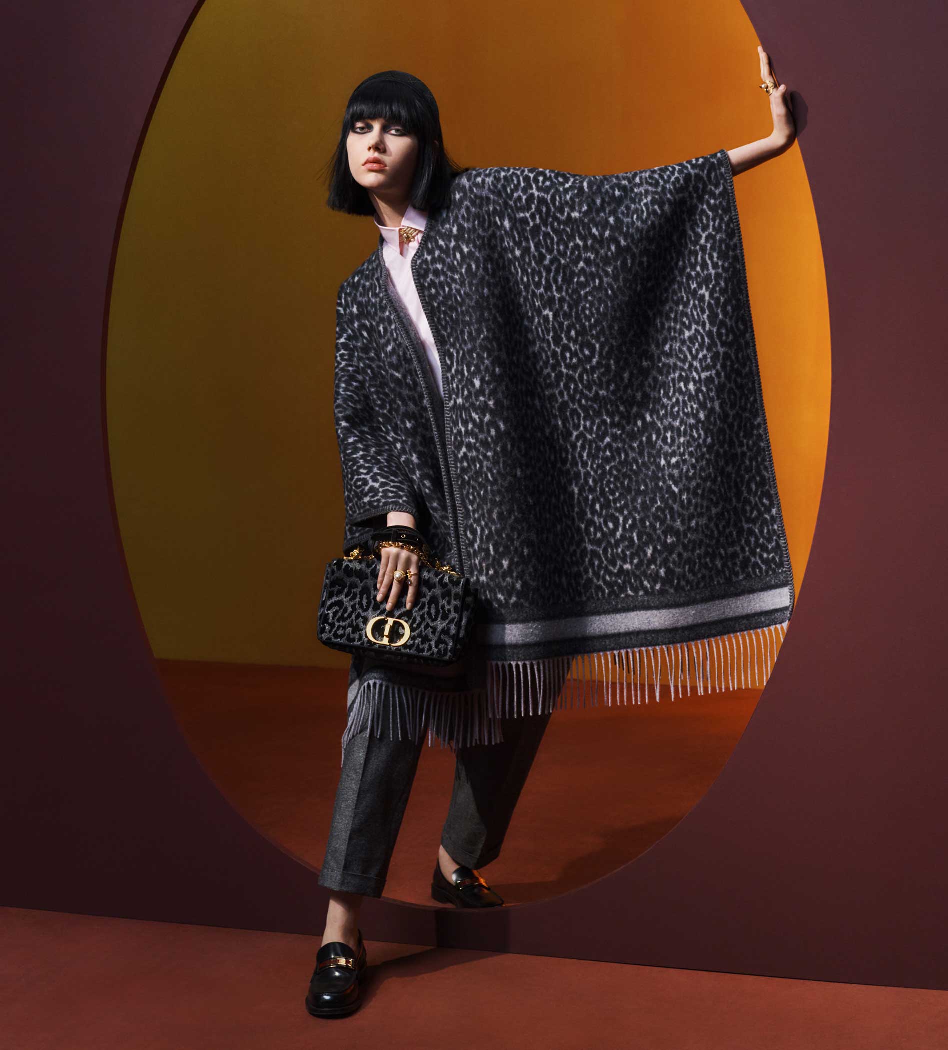 Celebrando a graça felina, este design arrojado – disponível em tom sobre tom, natural, cinza e preto – realça looks totais e combinações. As peças desta temporada, como lenços, gabardinas, saias e vestidos, são adornadas com a print, que também aparece nas bolsas Lady D-Lite, Dior Book Tote, Dior Caro e Saddle, além de sapatos Dior Granville e botas DiorAlps. Como toques finais, os chapéus e boinas Mizza arrematam a coleção.