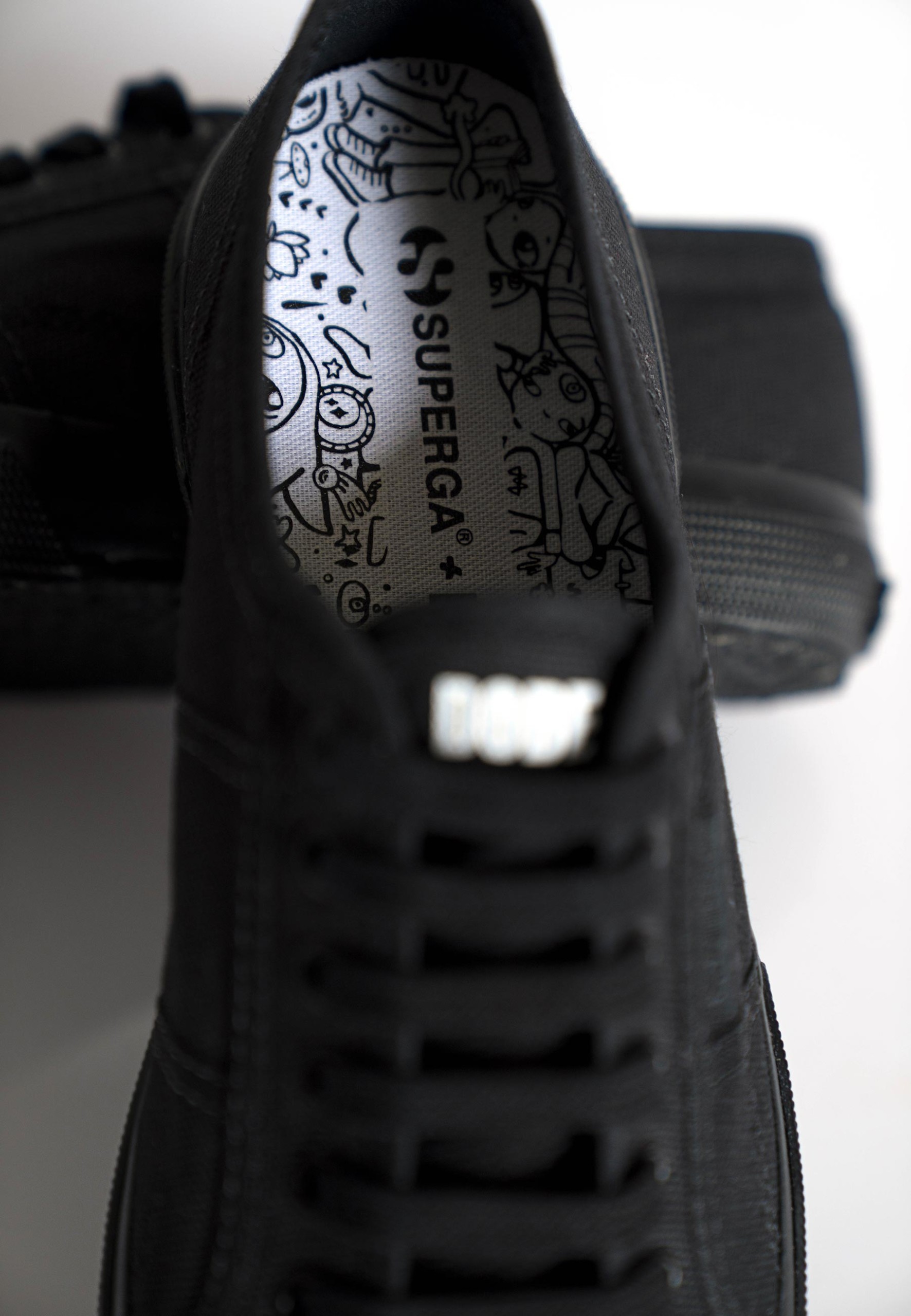 A grife gender fluid DOBE apresenta o resultado de sua mais recente collab fashion: um tênis Superga desenvolvido com projeto do artista plástico Pedro Sageon, aka Gurulino. A marca já fez uma linha de camisetas com o artista e retoma a parceria.