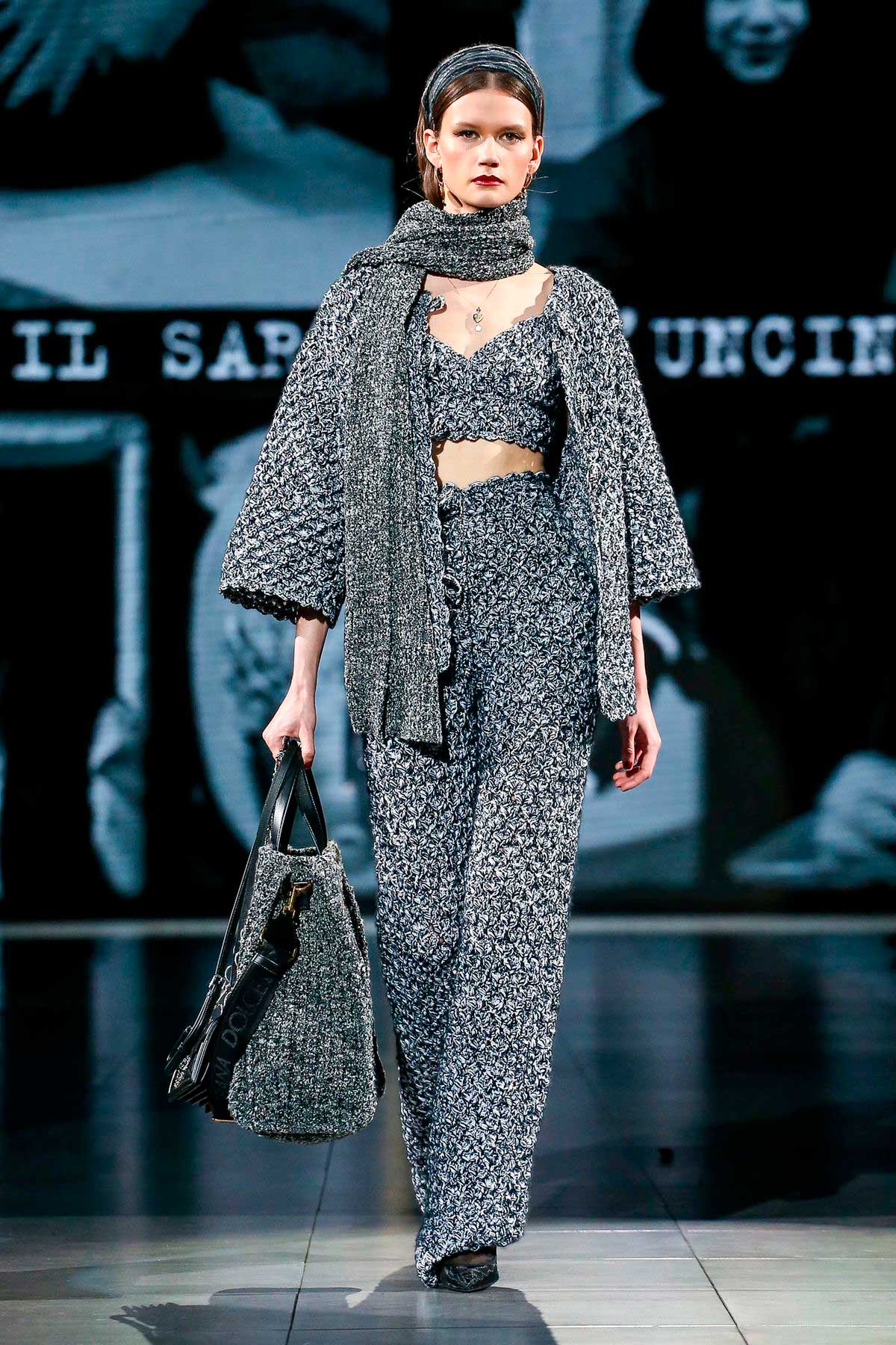 A Dolce & Gabbana resgata os valores mais arraigados à marca e invade a passarela com peças em rendas, crochês, tricôs e tecidos em tear.