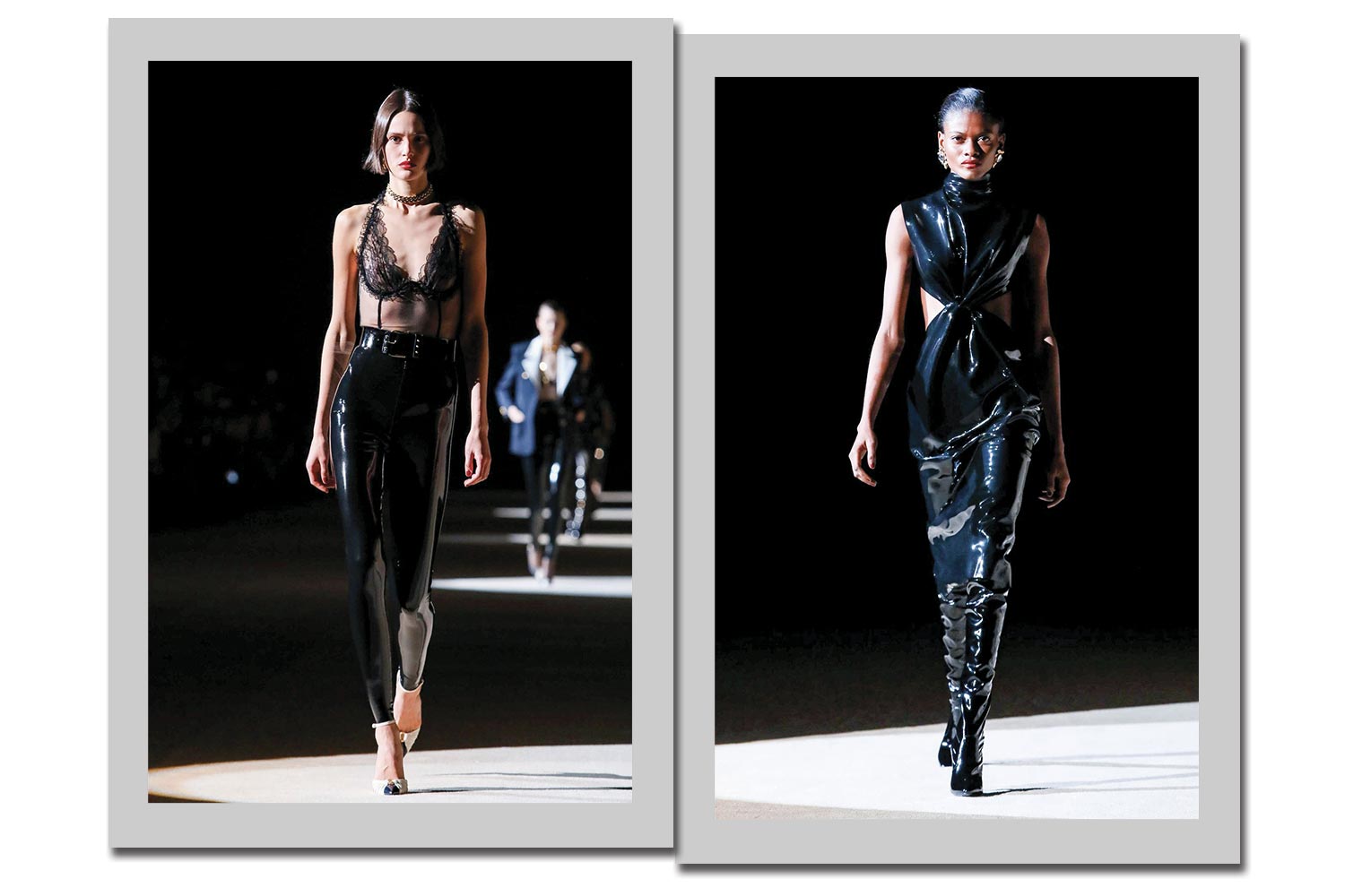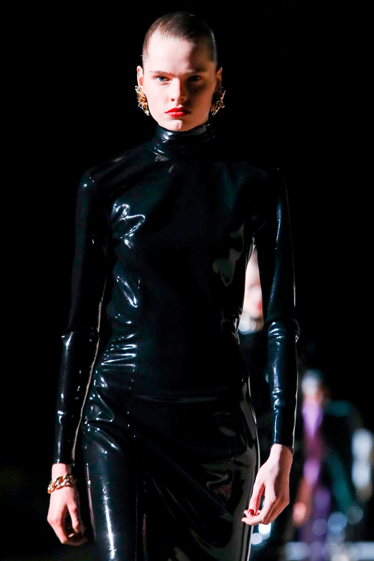 O desfile da Saint Laurent por Anthony Vaccarello (foto acima) é um dos pontos altos desta trend, com o látex em looks inteiros, coladíssimos ao corpo. Veja mais da temporada: