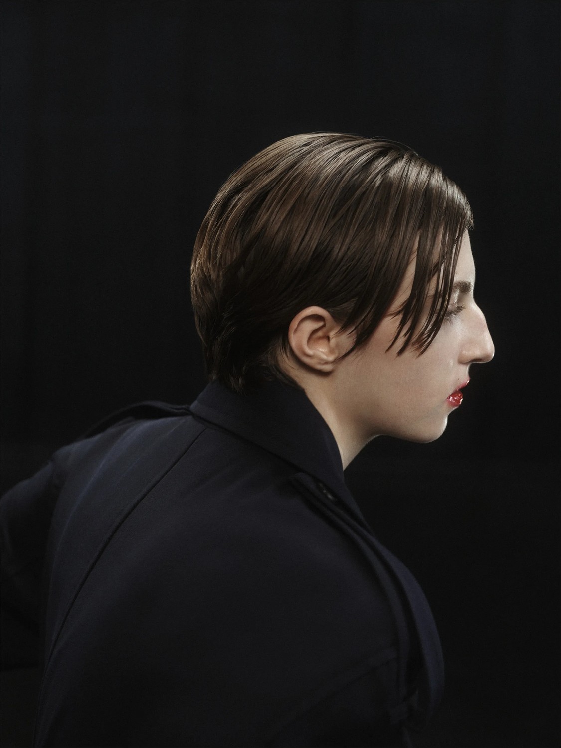 Acompanhando os ares dramáticos da apresentação, a beleza contou com lábios vermelhos borrados.