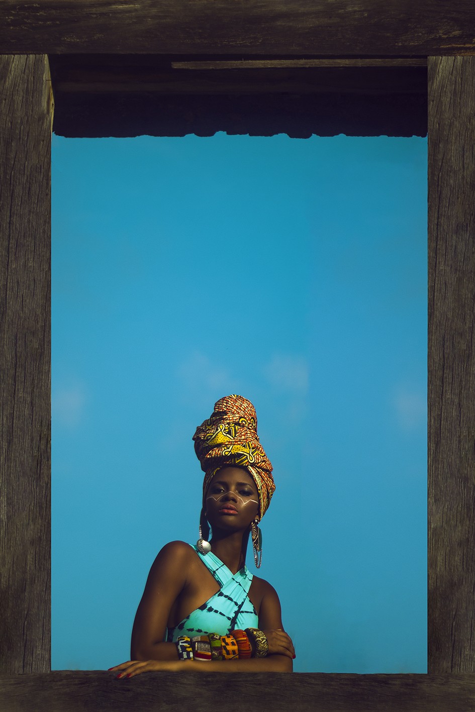 Body XoXo, turbante Tai Brum, pulseira Nega Roots e brinco Quixotesca.