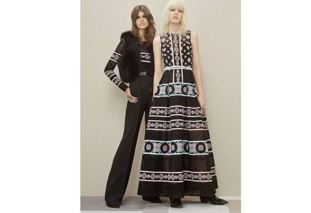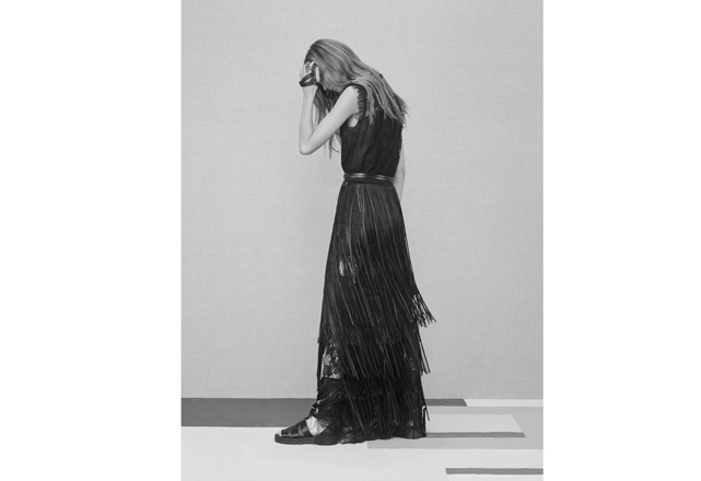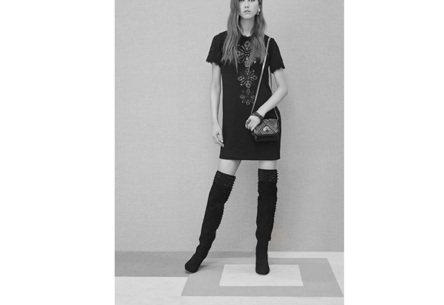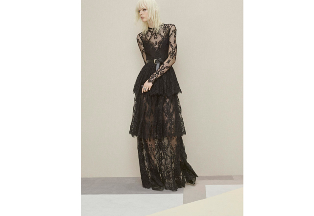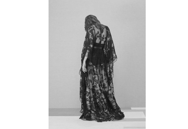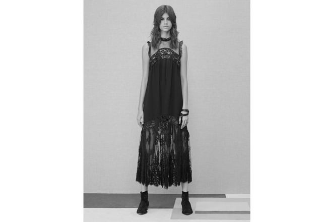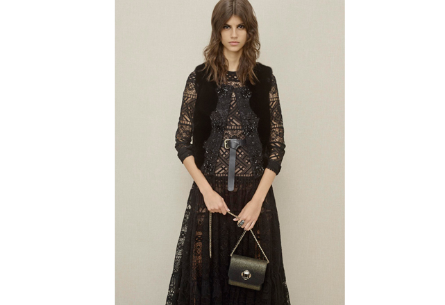 A atitude relaxada que Elie Saab explorou pela primeira vez em seu verão 2016 chegou até ao pre-fall 2016 do designer. Desta vez, ele olhou para o fim dos anos 60 em Londres e explorou as formas românticas e o ar boêmio que marcaram a época. Vestidos de renda preta assumem um charme juvenil com as botas sem salto ou com sandálias.