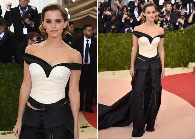 Emma Watson está sempre surpreendendo nos red carpets por onde passa! Na noite dessa segunda-feira (02.05), na edição de 2016 do Met Gala, a atriz apareceu com um modelo Calvin Klein feito sob medida para ela. O look, composto por cinco peças, desenvolvido em parceria com a Eco Age, foi feito a partir de fios de garrafas plásticas recicladas. As pets deram origem a três diferentes tecidos, que compuseram o look acima.