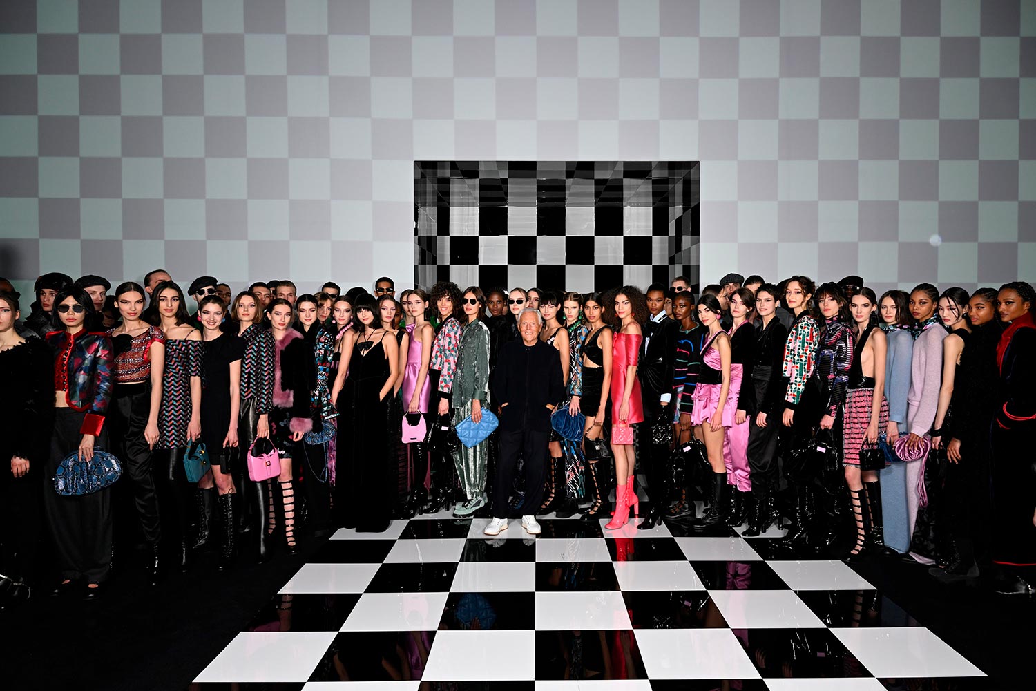 O desfile de inverno 2022 da Emporio Armani explora a palavra “glamour” como sinônimo de brilho, sedução e fascínio. No mindset da Armani, a linha leva a ideia de glamour de volta às suas raízes: o charme pessoal.