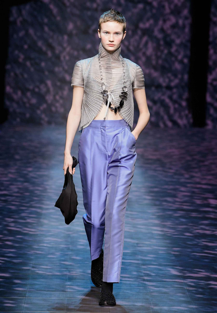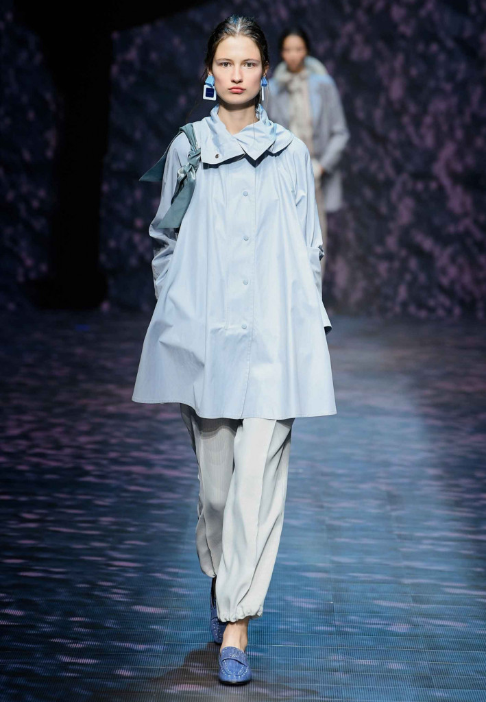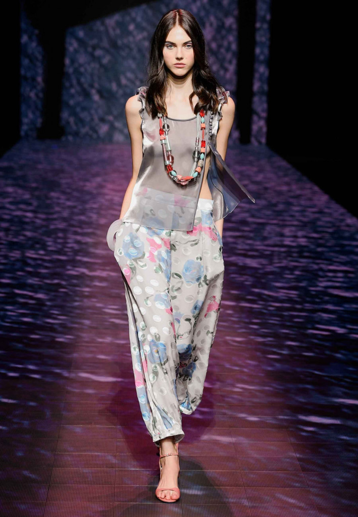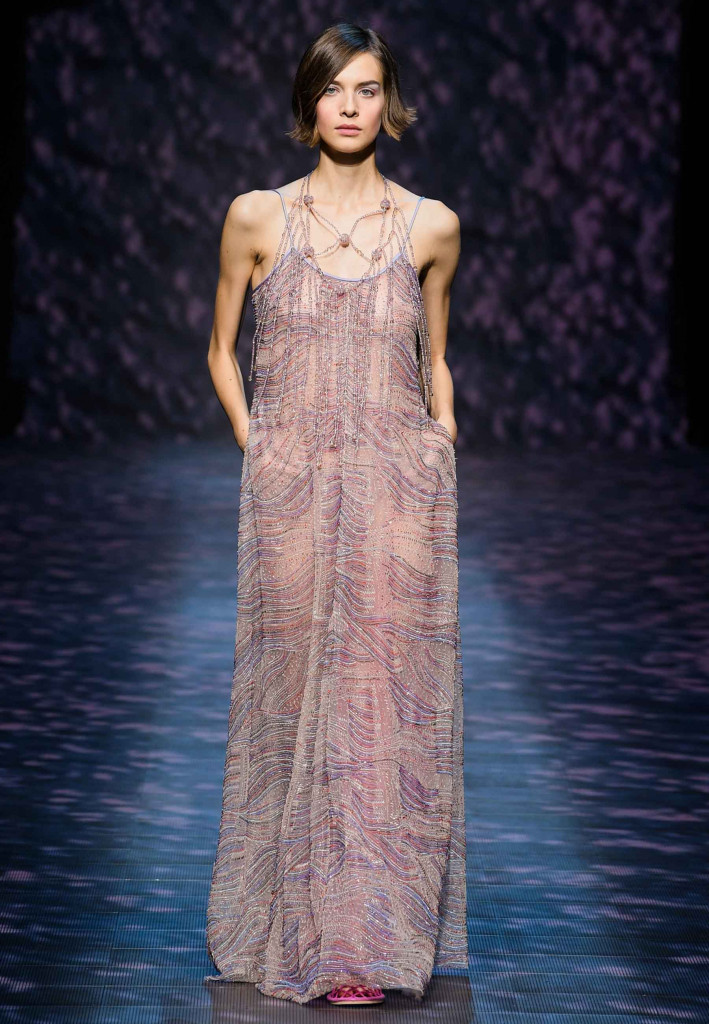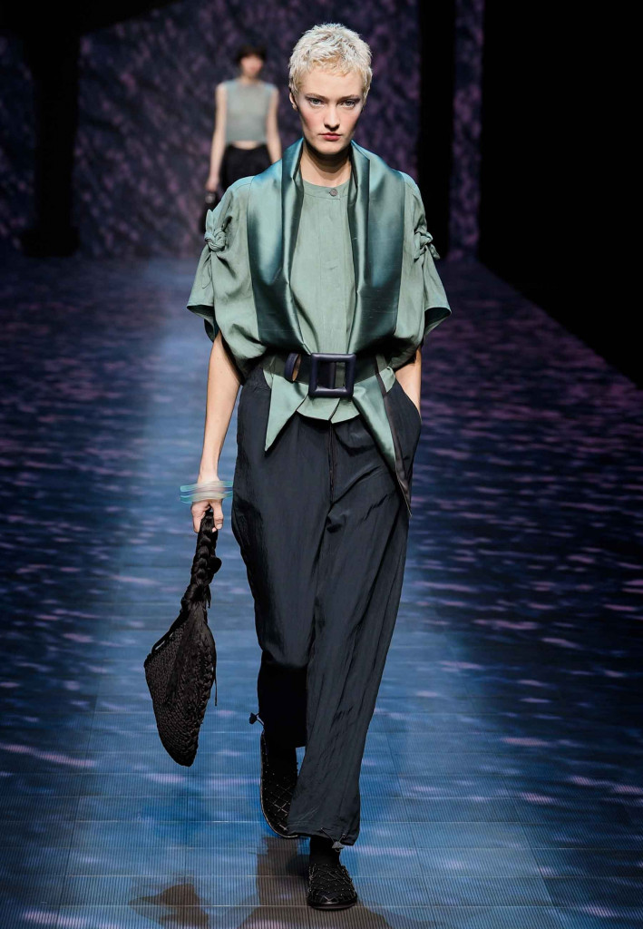 Impossível não lembrar da estrofe de Paulinho da Viola – “foi como um rio que passou em minha vida” – ao assistirmos a coleção verão 2023 da Emporio Armani, que nos convida a viajar por águas calmas que são traduzidas na escolha dos leves tecidos e acabamentos holográficos.