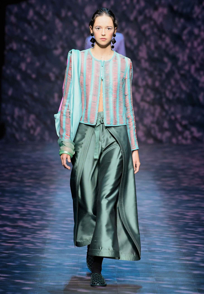 Amarrações em calças e blazers de ares orientais combinados às capas e blusas translúcidas trazem um balanço suave para a coleção, que mantém fresh nos acabamentos street e no uso 100% de sapatos flats de ar handmande! How cool, How Bazaar!