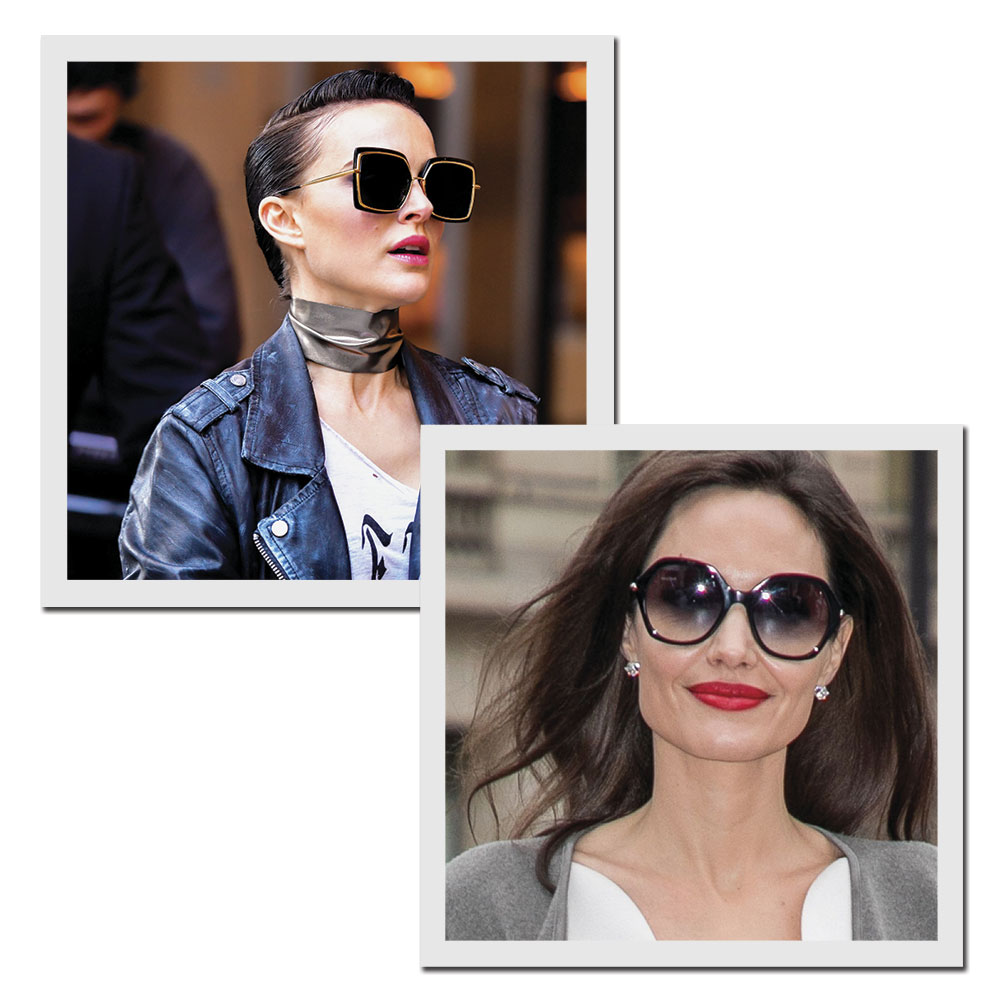 O segredo também é apostar no oversized. Você pode usar modelos quadrados ou mais arredondados. Veja como os modelos de Angelina Jolie e Natalie Portman conseguiram balancear seus rostos em formato quadrado.