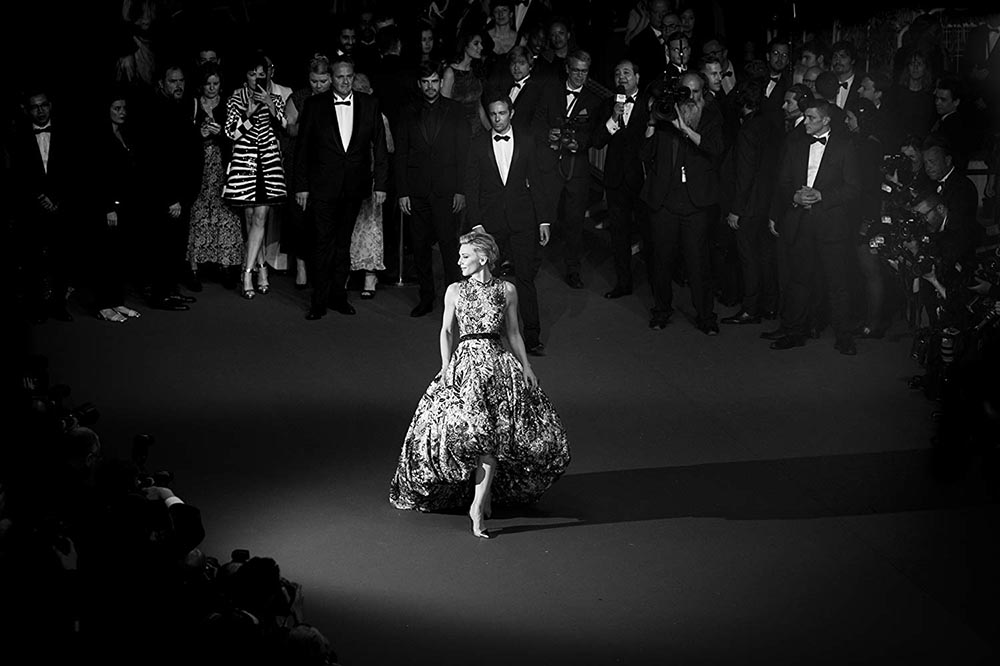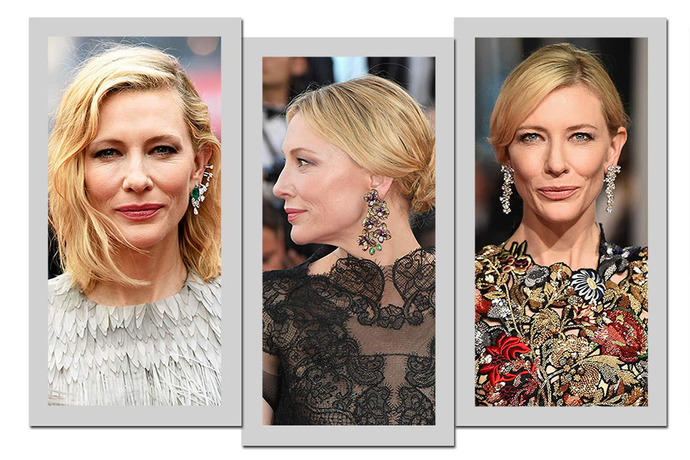 Aproveitando o cabelo curto ou em coque, Cate escolhe brincos extravagantes para arrematar o visual. Não importa se o vestido já é bordado, a australiana consegue o equilíbrio.