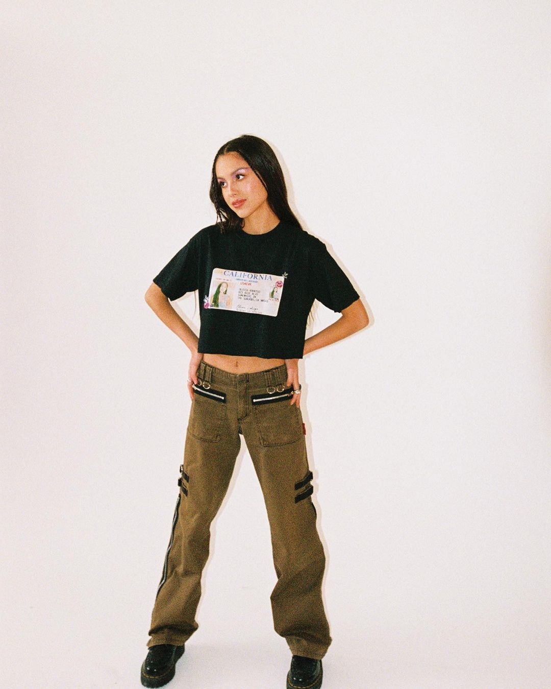 E basta uma olhada rápida no Instagram de Olivia Rodrigo para conhecer suas peças preferidas: t-shirts divertidas e tênis. Sempre usando o calçado para arrematar seus looks, a artista se expressa – e divulga seu trabalho – através das camisetas estampadas.