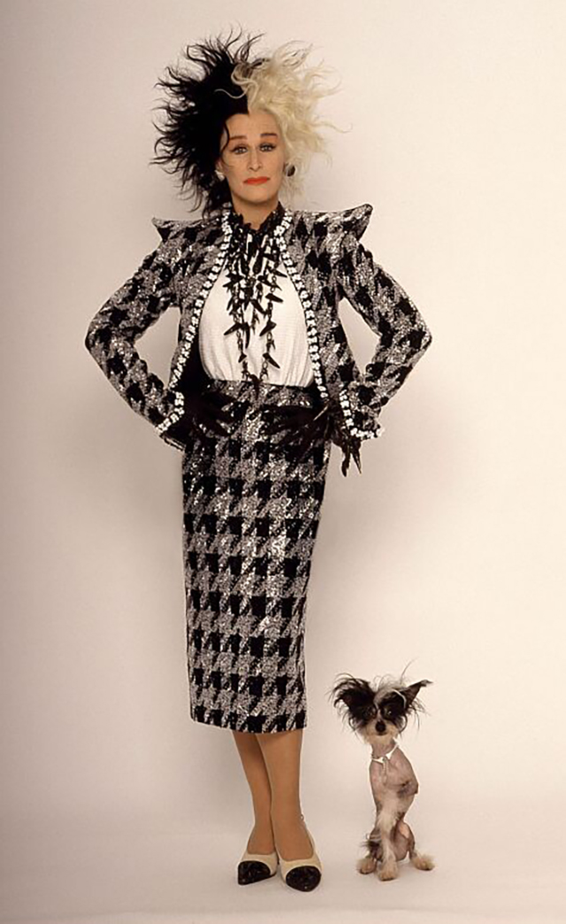 Em 1996, Glenn Close deu vida para a personagem Cruella De Vil, do clássico da Disney “101 Dálmatas”. Com um dos melhores figurinos do cinema, a atriz abusa do animal print, de acessórios extravagantes e do cabelo preto e branco.