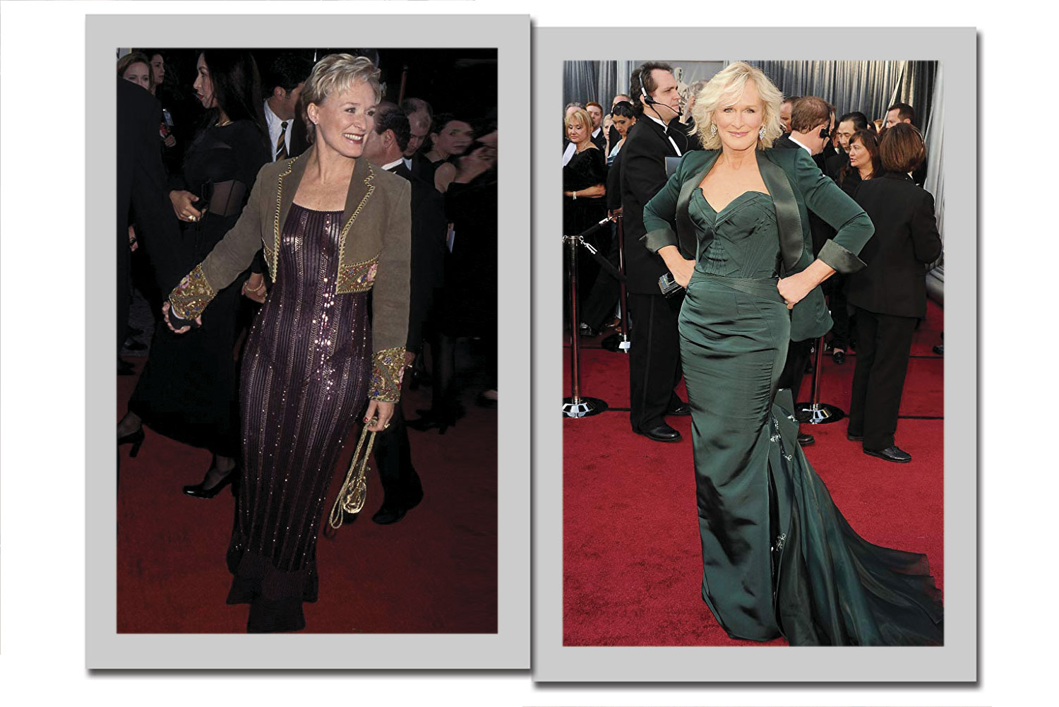 Glenn Close. 72 anos. Americana. Atriz. Fashionista. A eterna Cruella De Vil é uma das maiores atrizes vivas. Nominada a seis estatuetas do Oscar de melhor atriz, Glenn Close trabalhou ao lado de nomes como Jeff Bridges e Michael Douglas. Com traços impecáveis, a americana é um ícone de beleza e conquistou a indústria da moda com seus looks incríveis no red carpet.