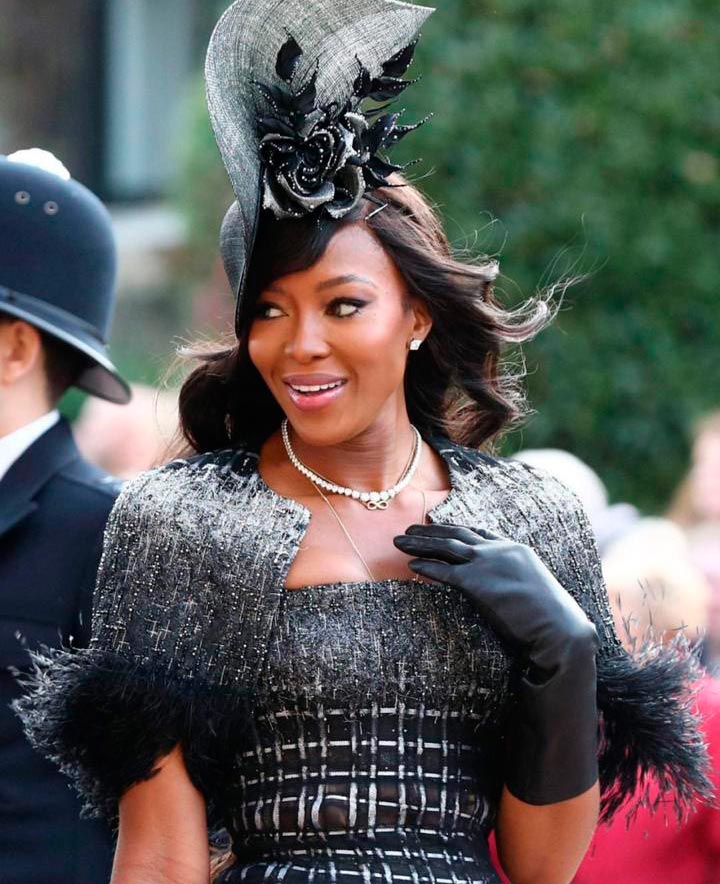 Ao comparecer no casamento real dos duques de Sussex, Naomi arrasou com seu modelo Ralph&Russo.
