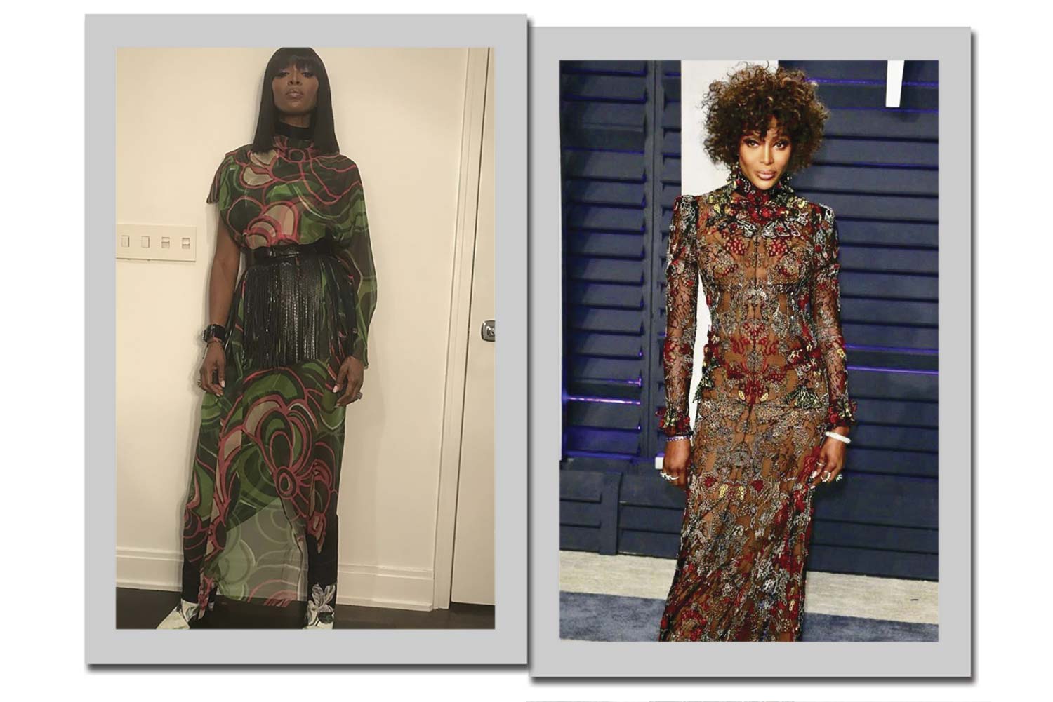 Naomi não tem medo de abusar dos estampados. Tanto que se veste dos pés a cabeça e ainda opta por modelos fechados, para manter o estilo extravagante.