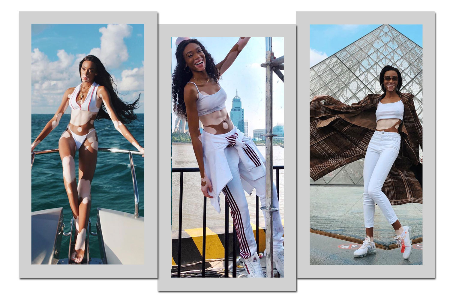 Winnie Harlow. 24 anos. Canadense. Modelo. Ativista. Capa de algumas Harper’s Bazaar pelo mundo e queridinha de marcas como L’Oreal e Tommy Hilfiger, ela ficou conhecida por sua participação na série de televisão “America’s Next Top Model”. Uma modelo nata, Winnie é portadora de vitiligo e possui uma pele manchada, a fazendo única na indústria da moda. Desvendamos seu estilo, veja a seguir e se inspire nos seus looks: