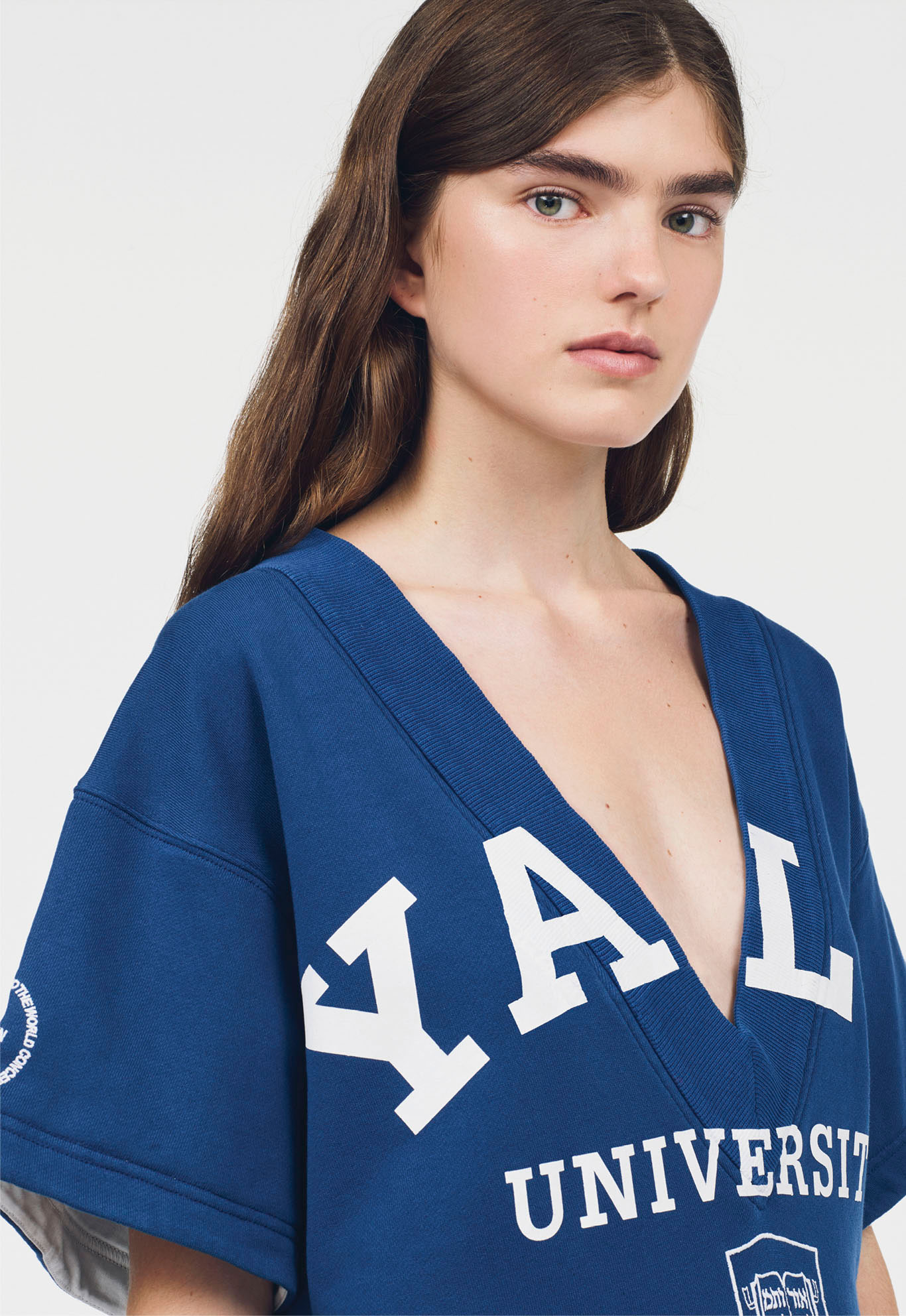 A Calvin Klein vai para a universidade no resort 2019. A grife se apropriou dos logos de Yale e Berkeley, duas das mais renomadas faculdades dos Estados Unidos, para estampar as roupas e acessórios da temporada, apresentados esta semana, em Paris.