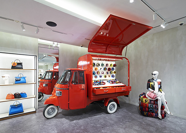 A partir desse final de semana, a Fendi irá viajar por toda a América do Norte com o seu Fendi Ape, uma versão de três rodas do icônico carro italiano. O automóvel venderá uma gama dos produtos mais emblemáticos da marca, como os chaveiros ABC de pele, as alças “Strap You” removíveis personalizadas, além do novo modelo de bolsa da casa italiana, a Dotcom.
