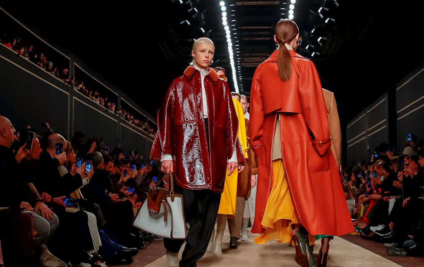 Verde mar, tangerina e azul são highlights. Criada em 1981, a “Karligrafia” para o monograma FF vem em botões cabochons e na pele trabalhada em intarsia. Plissados esvoçantes, camisas com colarinho alto, como ele gostava. O trench coat empresta seu cinto para várias peças. Entre os acessórios, a Baguette é a estrela e vem matelassada e utilitária, com duas alças. No final, um lindo filme fechou com chave de ouro. Simplesmente chique.