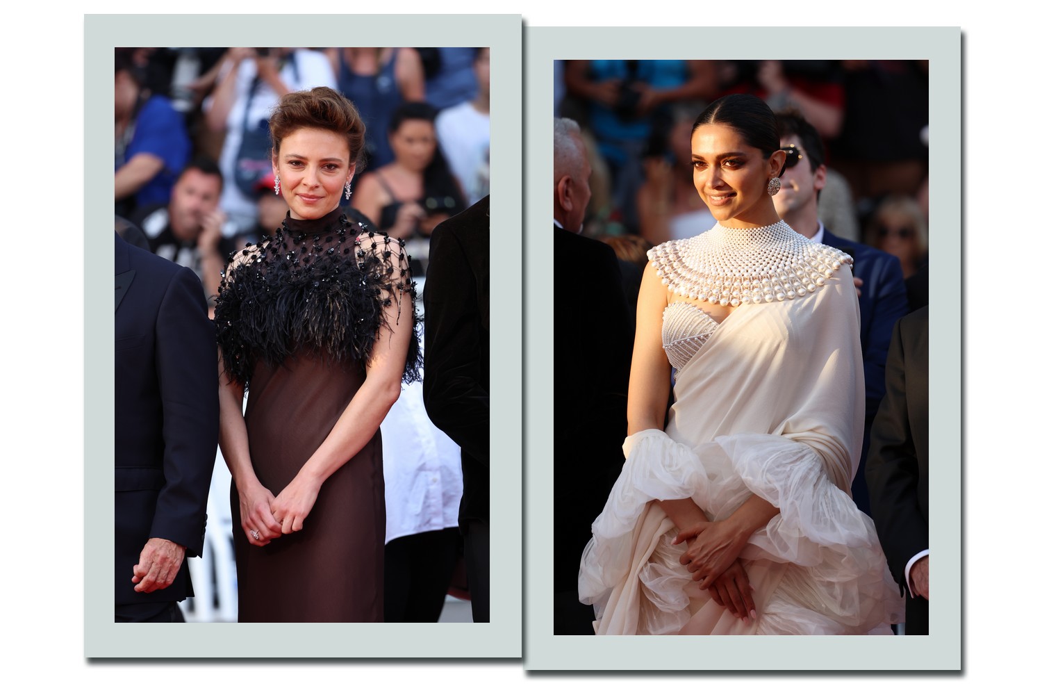 Deixe os decotes ousados de lado, uma das tendências que se destacou no Festival de Cannes foram os vestidos com detalhes no colo. Bordados, plumas e outras aplicações chamam a atenção para a região, deixando o visual mais elegante, principalmente nos modelos que sobem pelo pescoço. Membros do júri da premiação, Jasmine Trinca usou um vestido da Prada em que uma delicada rede de cristais finalizada com plumas completava a silhueta justa e básica da peça, enquanto Deepika Padukone escolheu o modelo de Abu Jani Sandeep Khosla que conta com uma exuberante gola de pérolas.