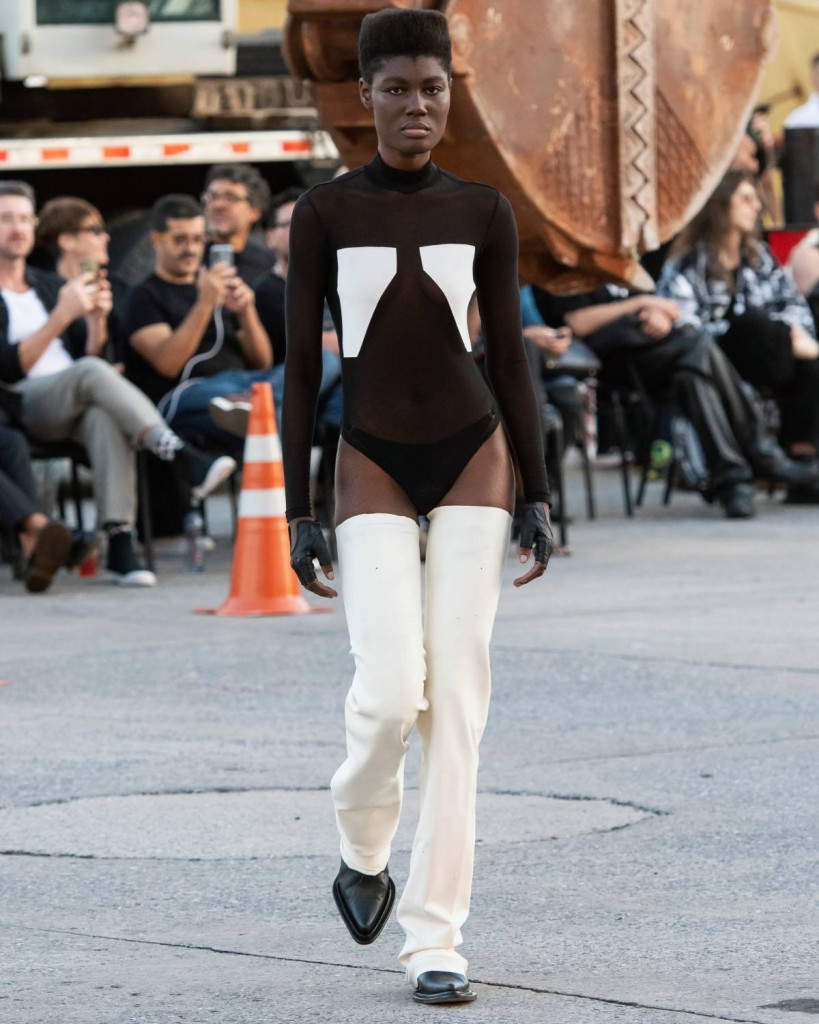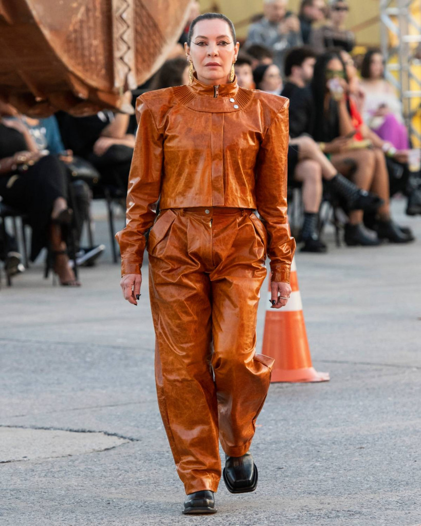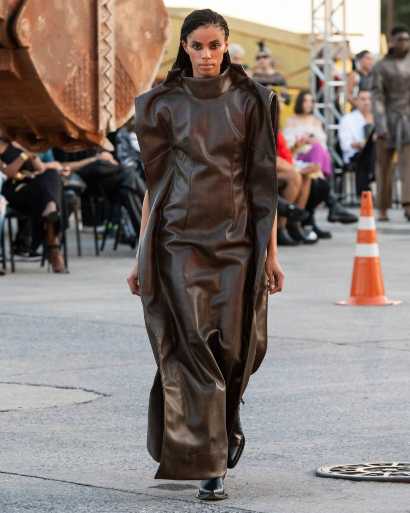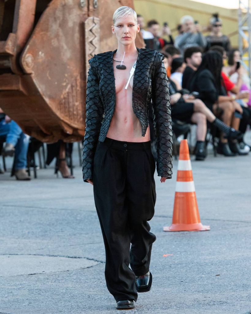 “A grande inspiração foram as construções civis. Quando você olha um prédio em construção, ele está se erguendo todo sólido e duro, há sempre um tecido de proteção que é suave e quase voa. O ferro também está sempre presente, muito industrial. Por isso, tivemos a ideia dos guindastes ao redor do desfile e de criar um cenário verdadeiramente industrial. Isso faz parte do nosso DNA e do da Forca”, completam.