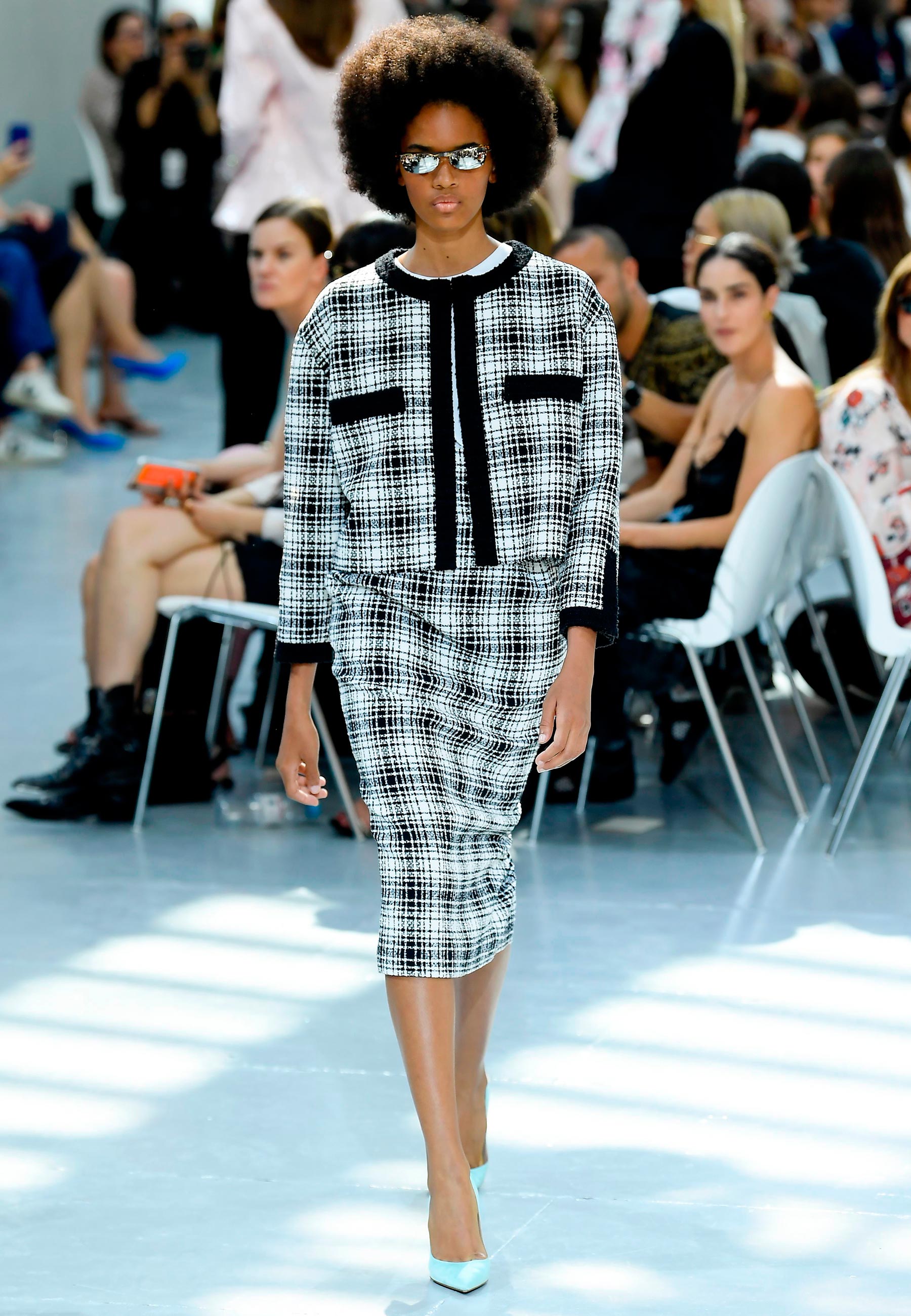 No desfile de Alexandre Vauthier, a aposta é no xadrez, estampa atemporal e elegante.