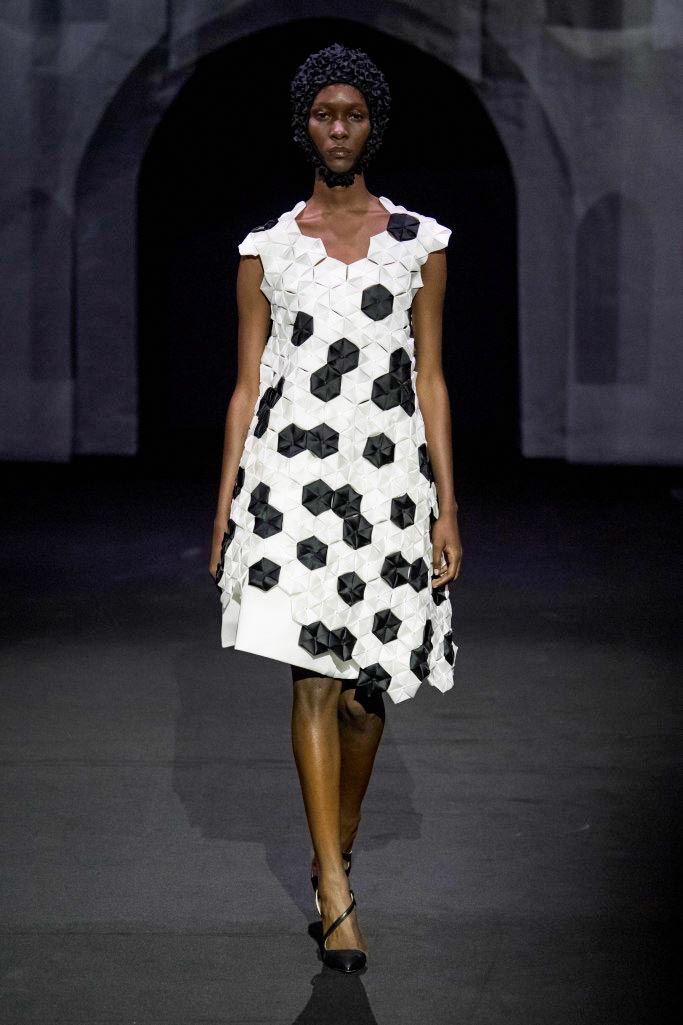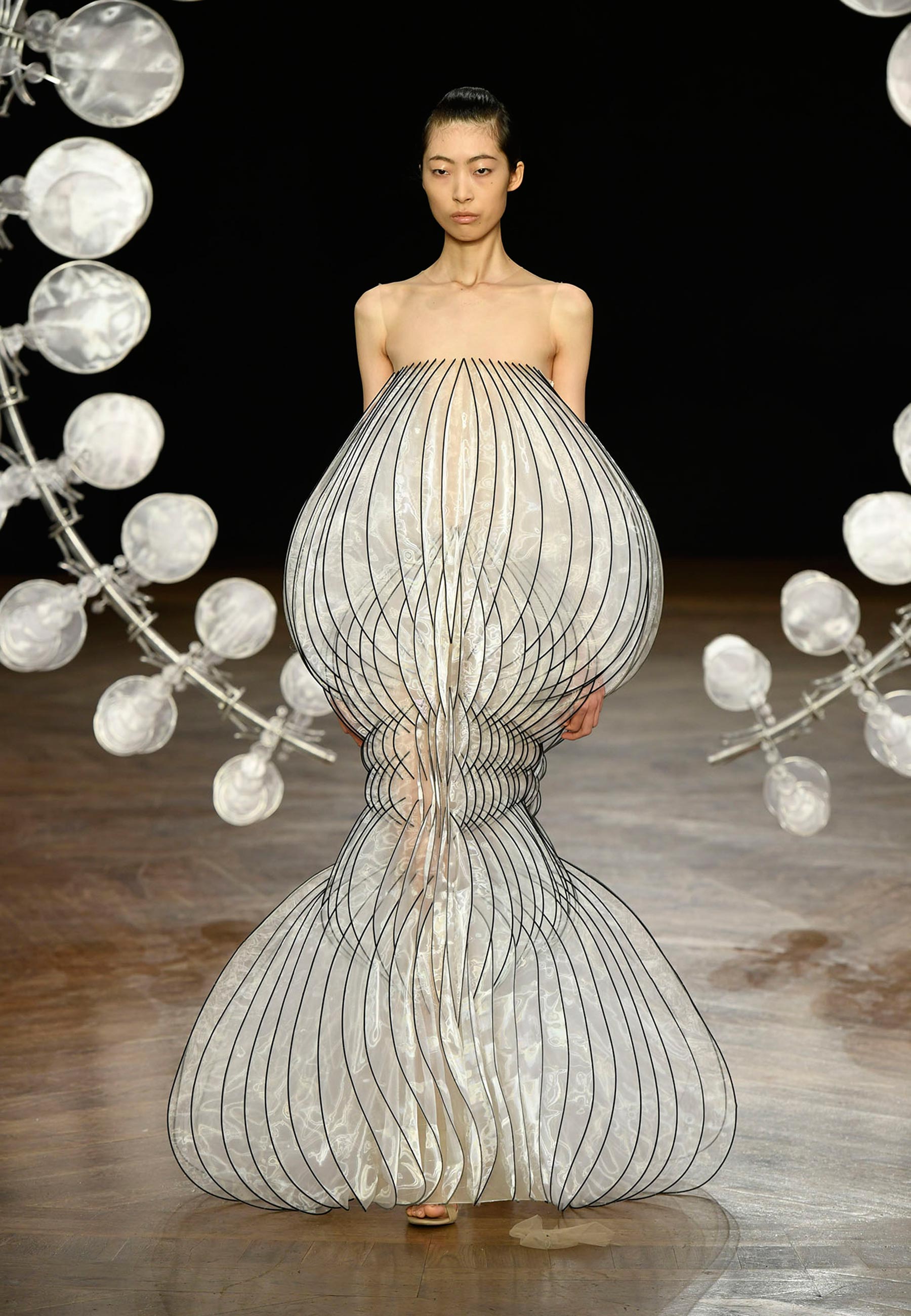 Iris Van Herpen é a rainha da geometria, e faz vestidos geométricos com muito volume.
