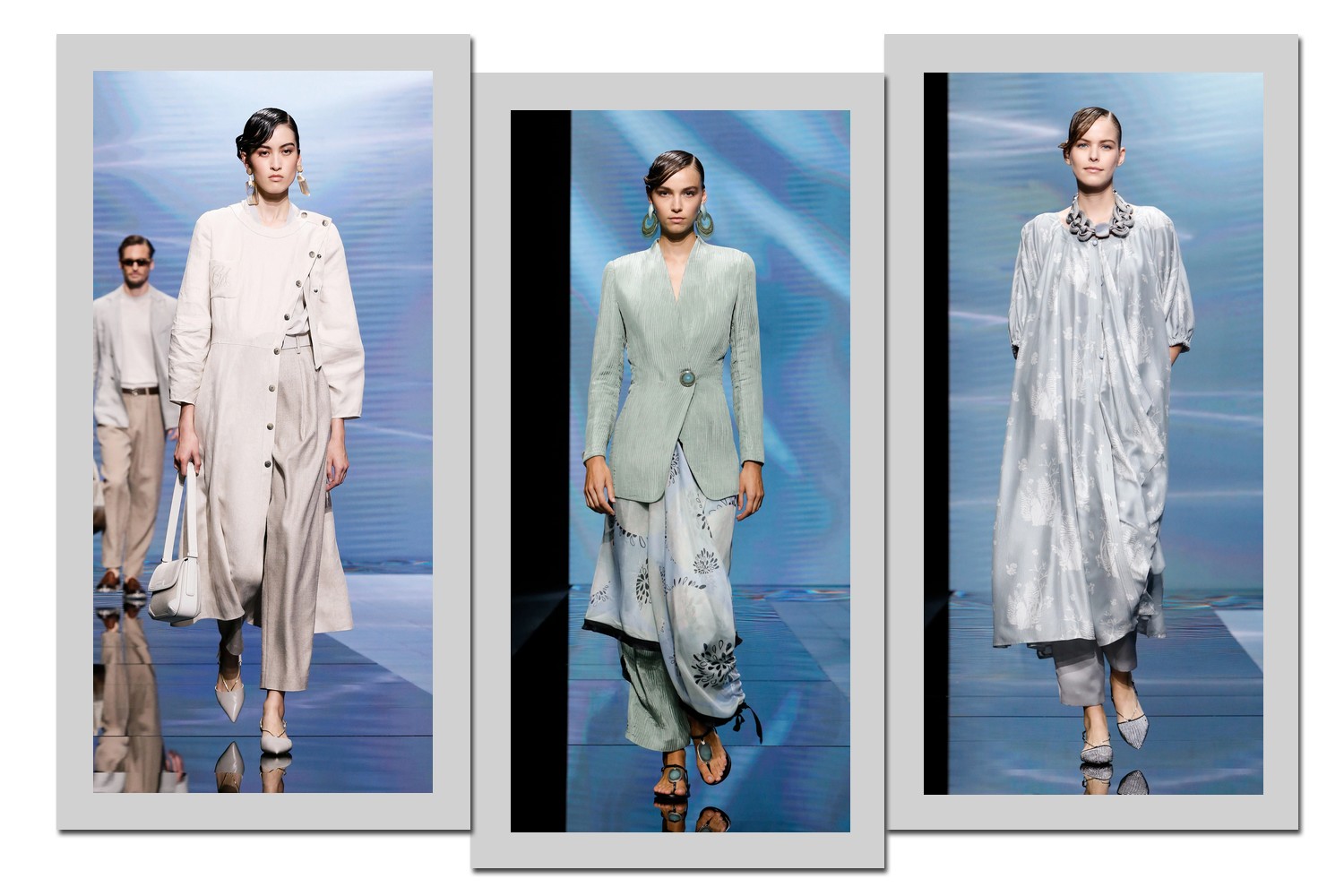 Olhando para trás, são 45 anos de um trabalho incansável para criar peças que resistem ao tempo. Daí “Timeless Thoughts” como título do desfile feminino e masculino e também do documentário sobre a trajetória do estilista, narrado pelo ator italiano Pierfrancesco Favino, exibido quase simultaneamente ao desfile.