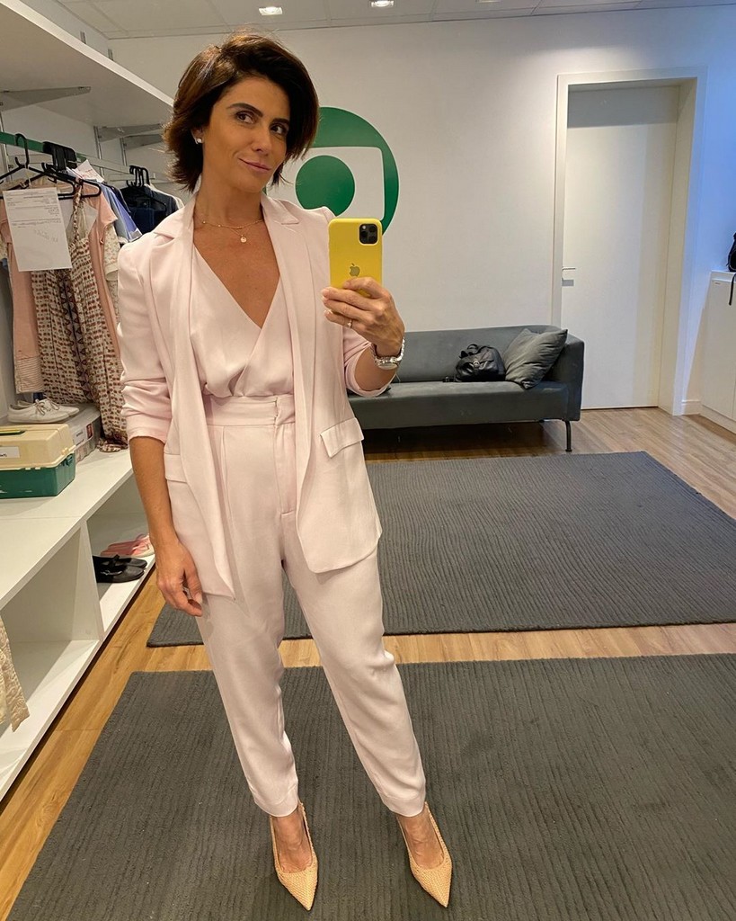 As cores também podem ajudar muito neste momento, como a escolha monocromática feita pela atriz. O rosa claro traz tranquilidade em um momento em que é fácil se deixar levar pela tensão da situação.