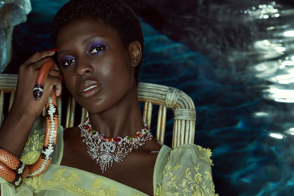 Evocando o glamour de Hollywood, Jodie Smith estrela a nova campanha “Gucci High Jewelry”, que apresenta a segunda coleção de alta joalheria da marca, “Hortus Deliciarum”. A linha se baseia em motivos simbólicos que são caros a ao diretor criativo Alessandro Michele e para a grife. Uma organização de bem-estar animal esteve presente no set e verificou que nenhum animal foi prejudicado na realização desta campanha.