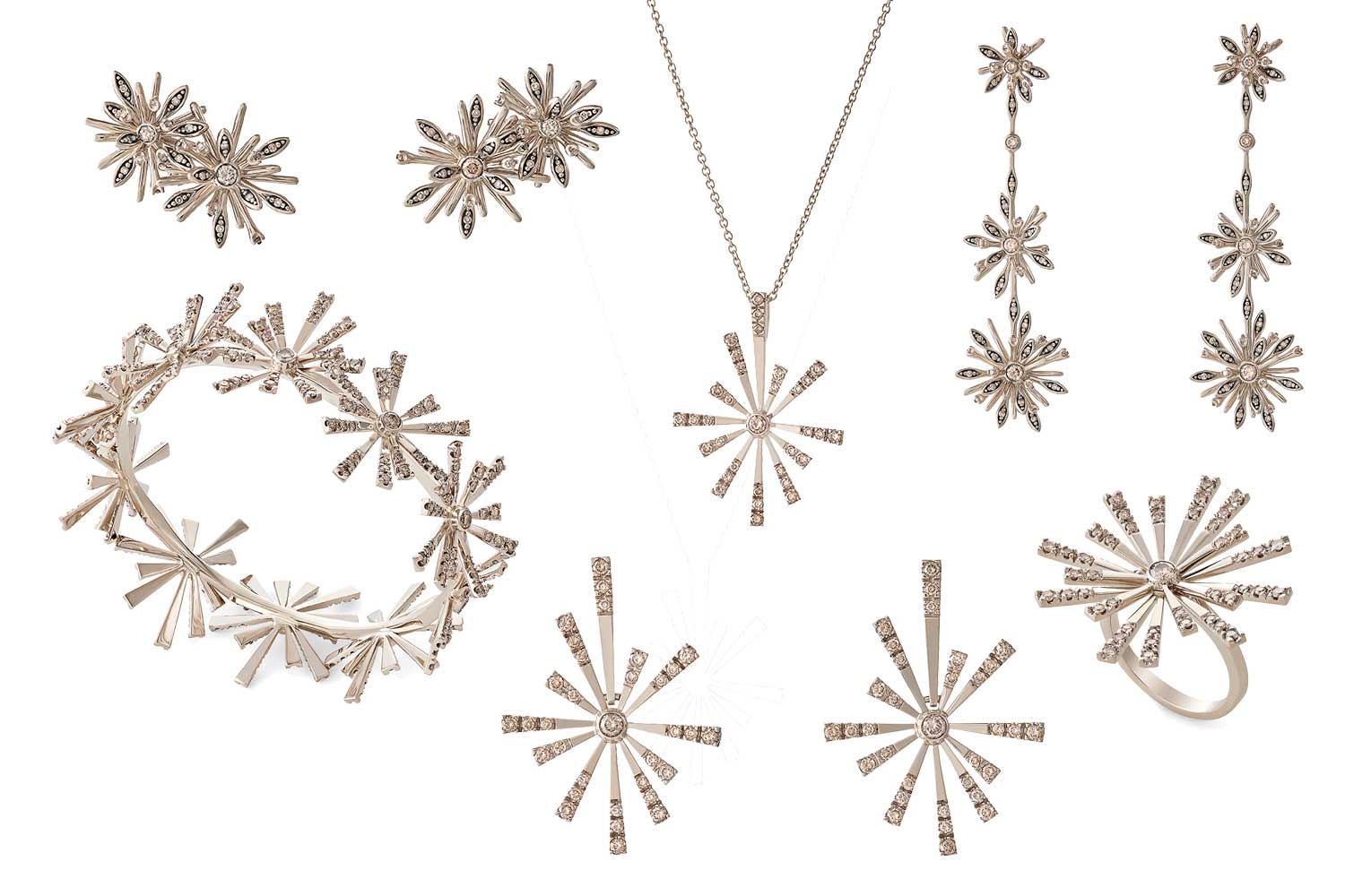 A nova série preciosa traz brincos, anéis, pendentes e pulseiras feitos de ouro nobre 18K, o tom champanhe exclusivo da joalheria, com acabamento polido e cravejados de diamantes.