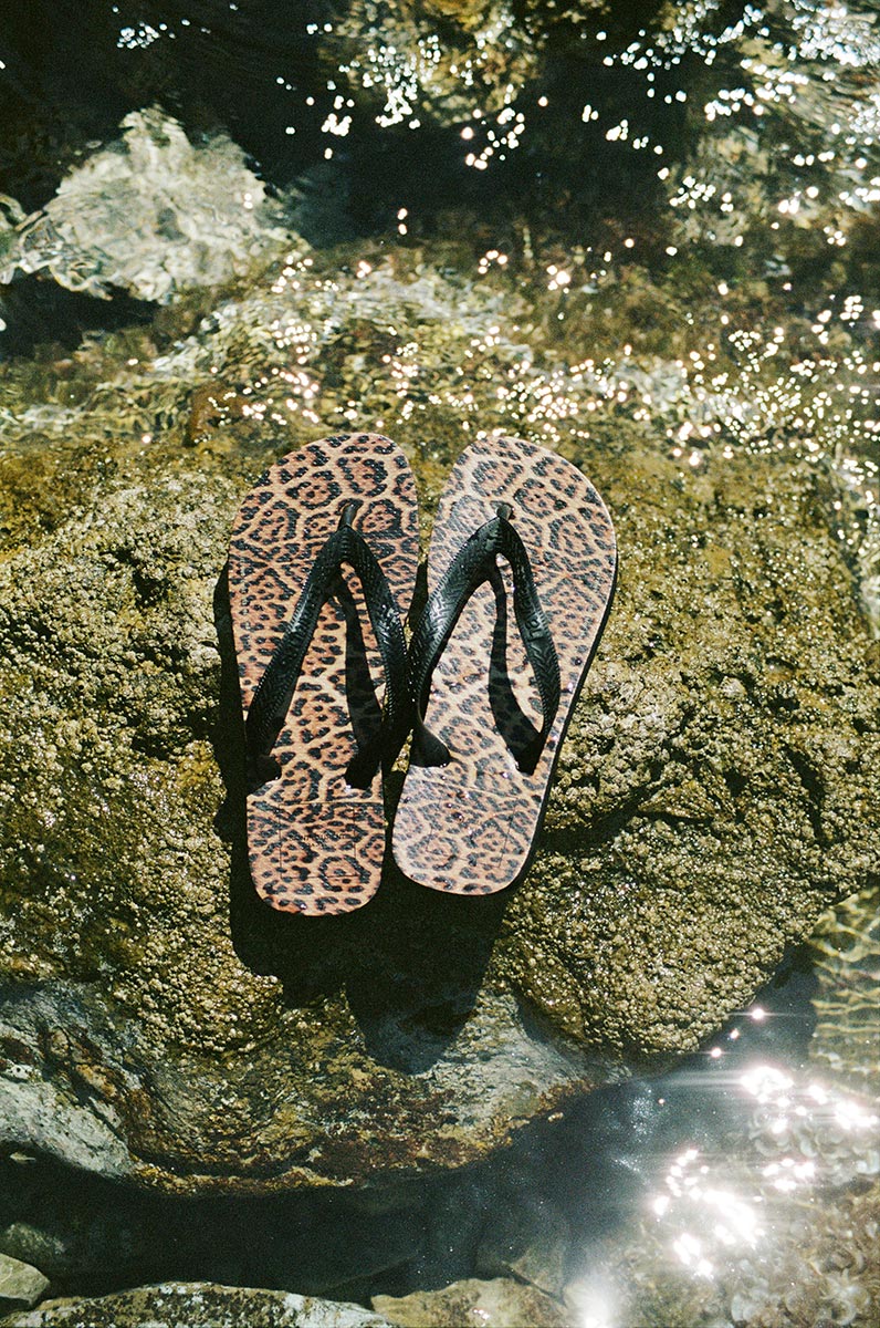 A brasileira Havaianas e francesa Saint Laurent anunciam collab inédita. O fruto da união é um modelo com estampa de oncinha e alças pretas.
