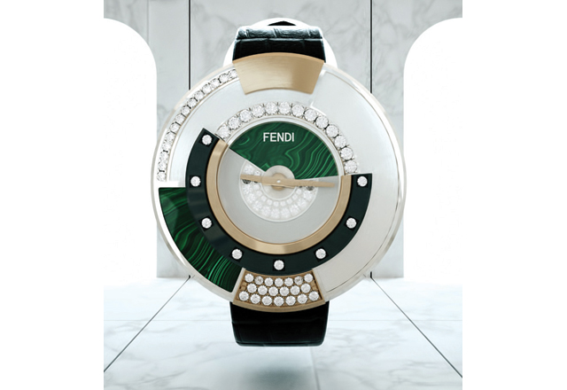 Os elementos e materiais usados nos relógios celebram Roma e seu magnetismo eterno, mas de uma maneira indireta. As camadas se misturam em um jogo de volumes cheios e vazios, evocando o Palazzo Della Civilità Italiana, a nova sede da Fendi, na capital italiana, com seus arcos através dos quais brilha a luz, marcando o tempo de uma maneira singular e surpreendente. Eclipses elegantes criam superfícies sobrepostas sobre o mostrador do relógio, inspirado na estrutura arquitetônica da cidade, com suas ruas ímpares.