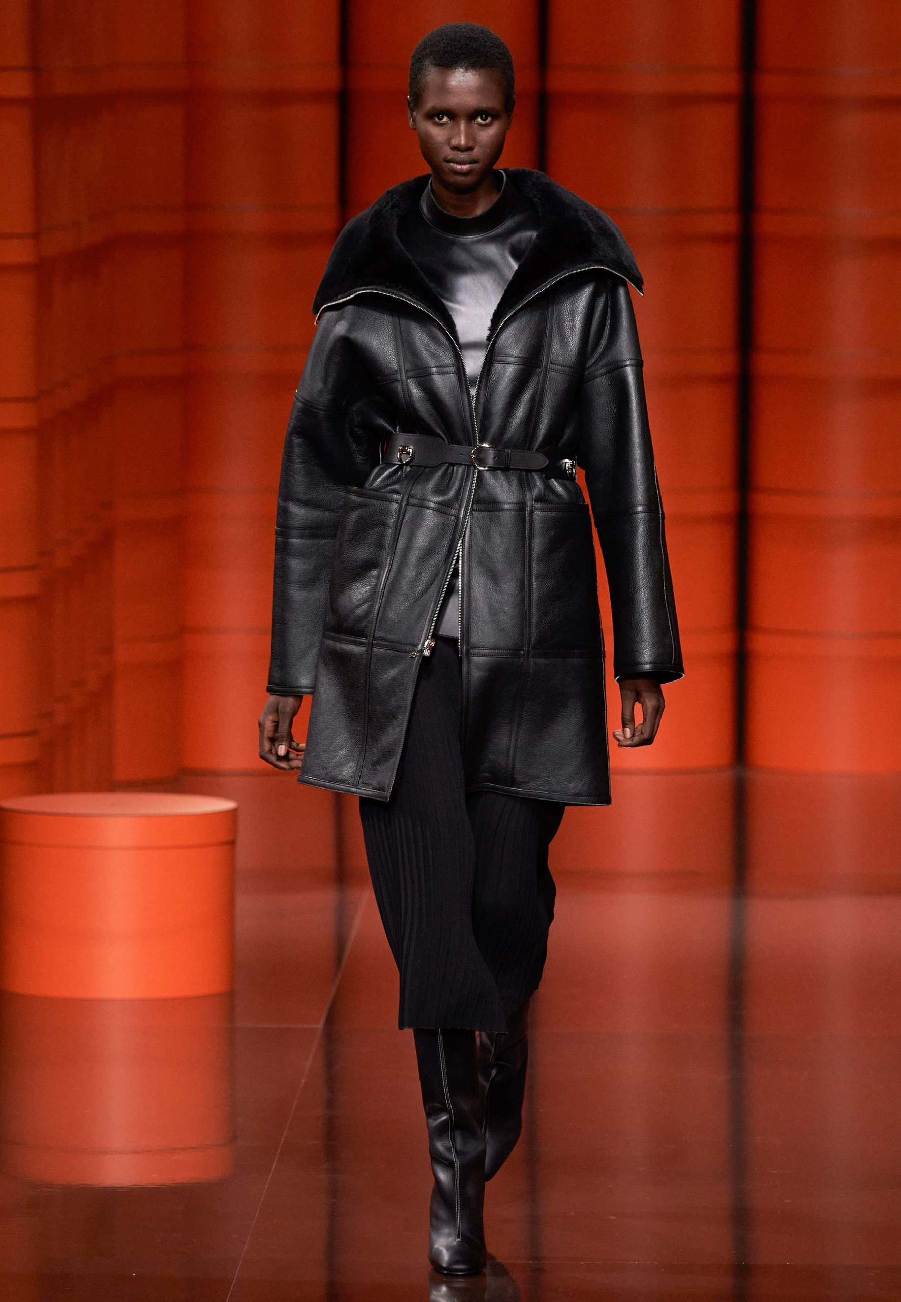 Em seguida, em Paris, a coleção de modelagem simples desfila clássicos despretensiosos, de inegável elegância. Vestidos slim, bons separates, cintura marcada por cinto fino se destacam. Calças cropped com costuras aparentes em retângulos chamam a atenção. Assim como os bordados pontuais que decoram peças em couro macio e as franjas que surgem aqui e acolá.