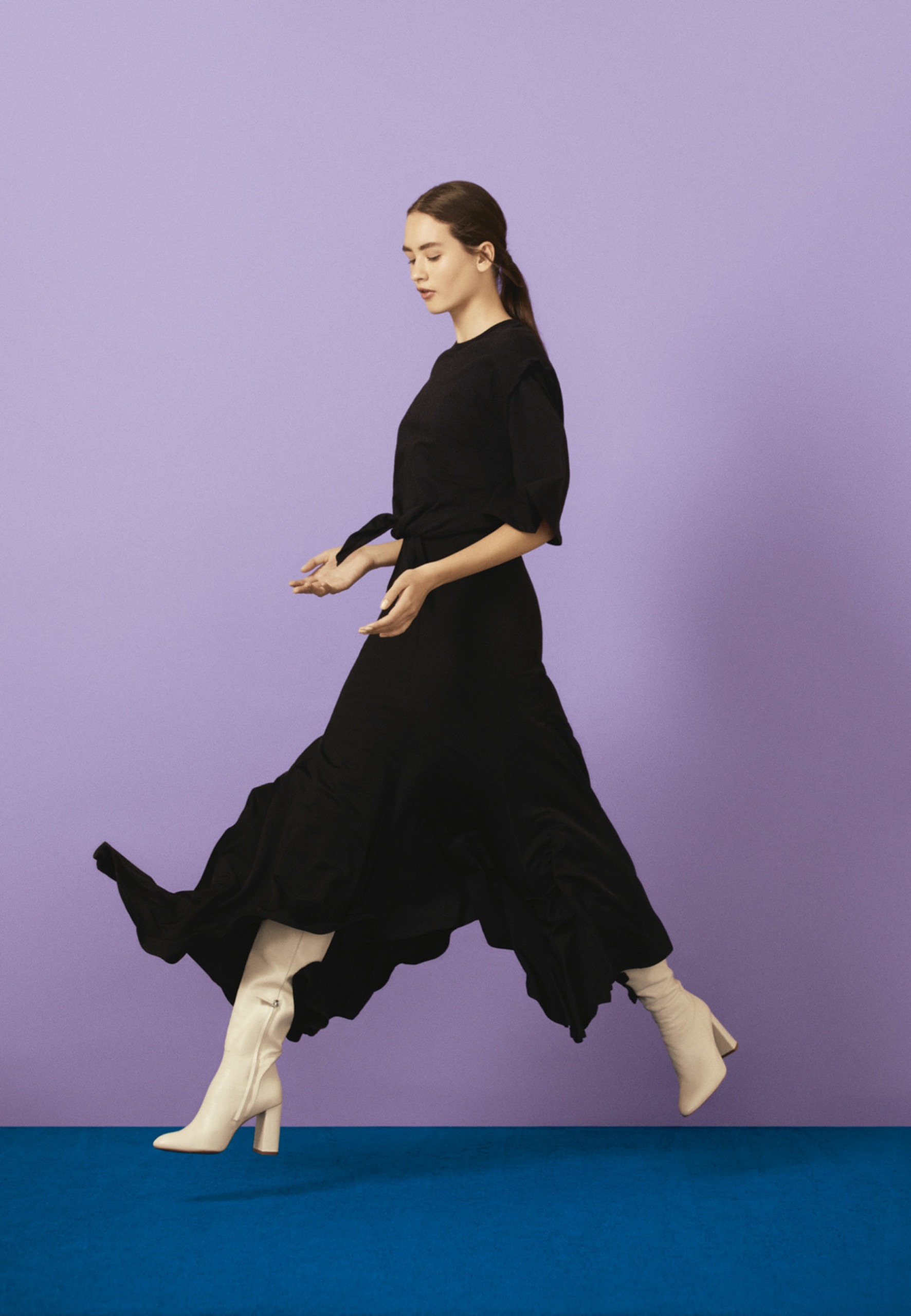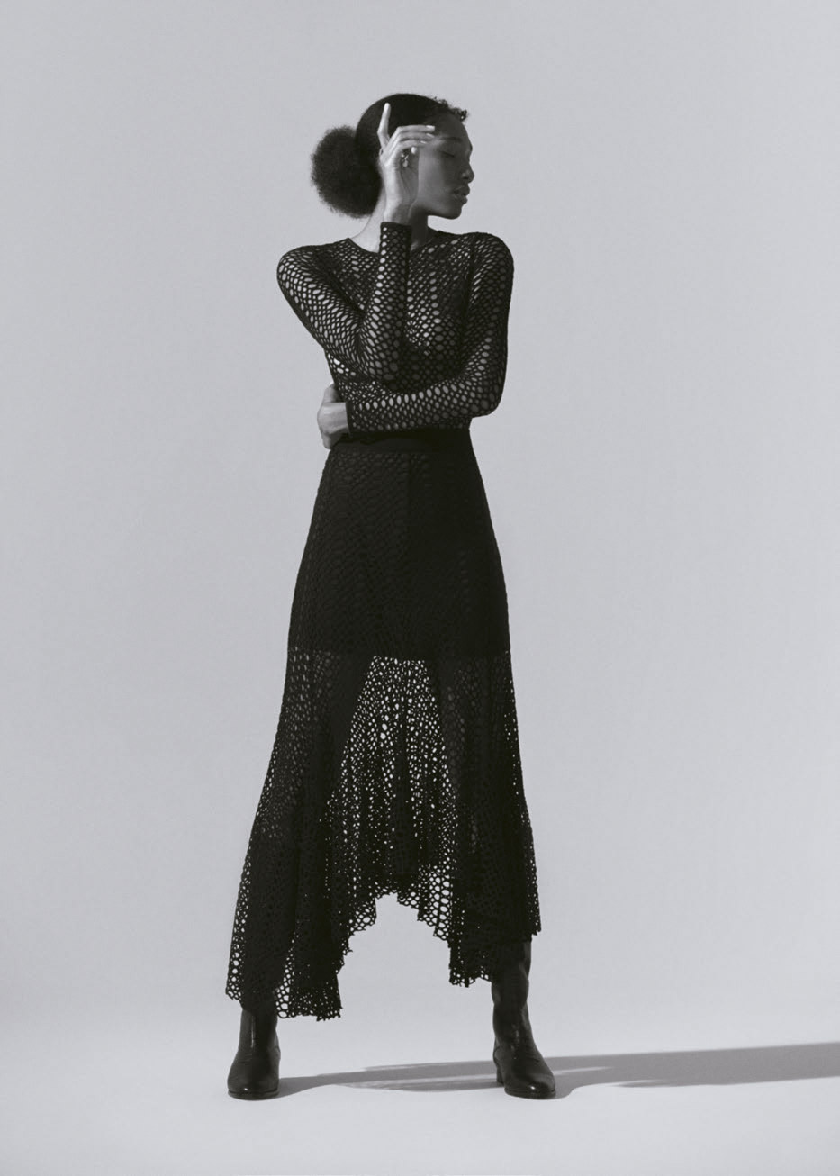 Peças atemporais com materiais de alta qualidade e que, portanto, duram mais tempo no guarda-roupa, e vestidos fluidos com tecidos que amassam pouco, como viscose, também contribuem para um menor impacto no planeta. “Nossa coleção é 70% atemporal e 30% uau”, explica a head de estilo. As coleções-base serão lançadas semestralmente, com entradas mensais.
