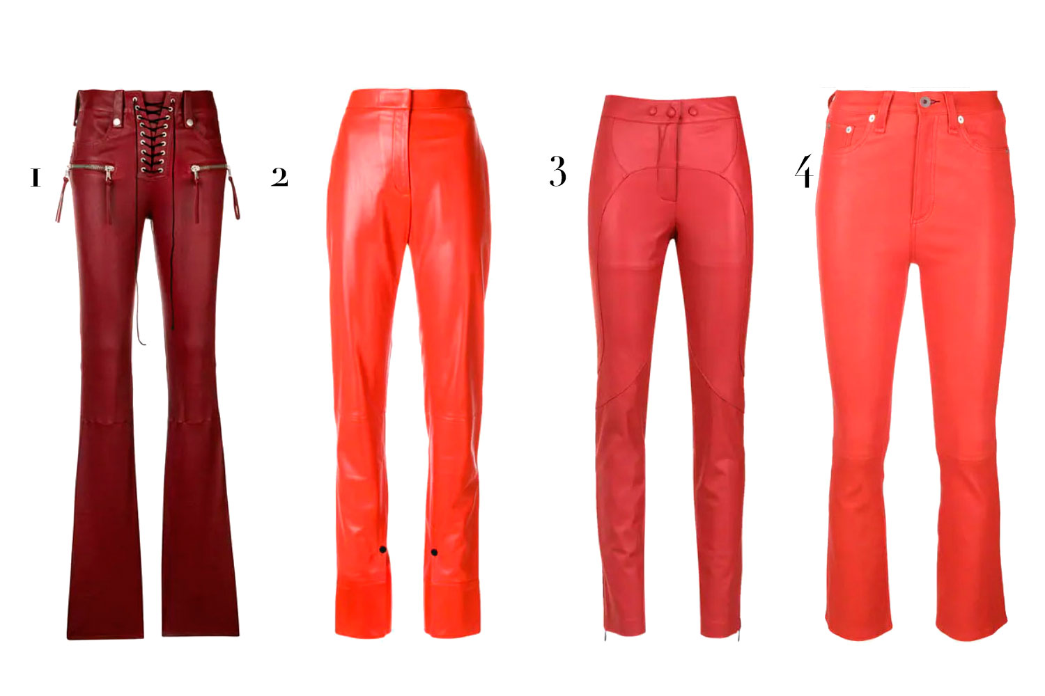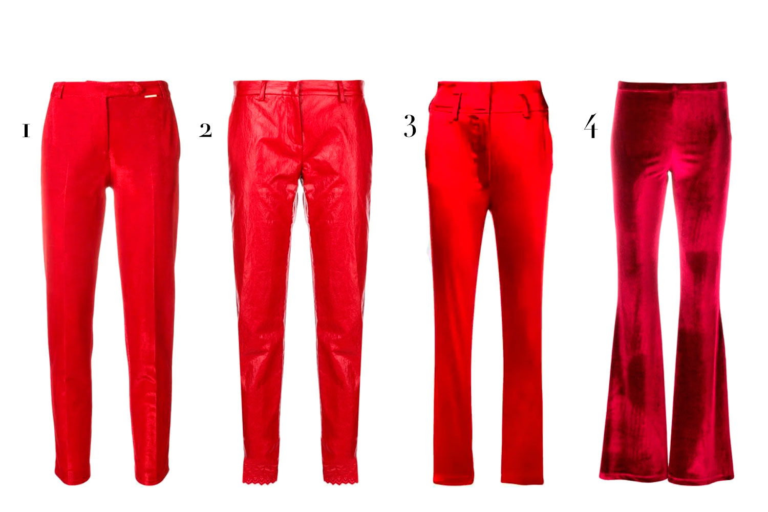 O jeans sempre é bem-vindo. Em sua versão red, fica ótimo com camisetas em looks descontraídos. Se a sua pegada é rocker, então invista em uma calça de couro, como as dos looks de Rita Ora e Marina Ruy Barbosa.
