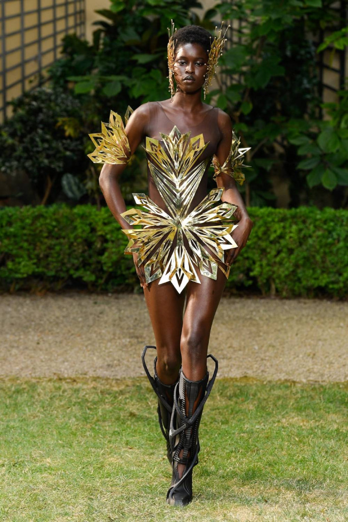 Van Herpen é especialista em criar uma feminilidade que foge às expectativas, com um toque de modernidade e elementos mais brutos. Para esta coleção, em específico, a designer cria verdadeiras armaduras metálicas que reforçam sua proximidade à construção de silhuetas sensuais.