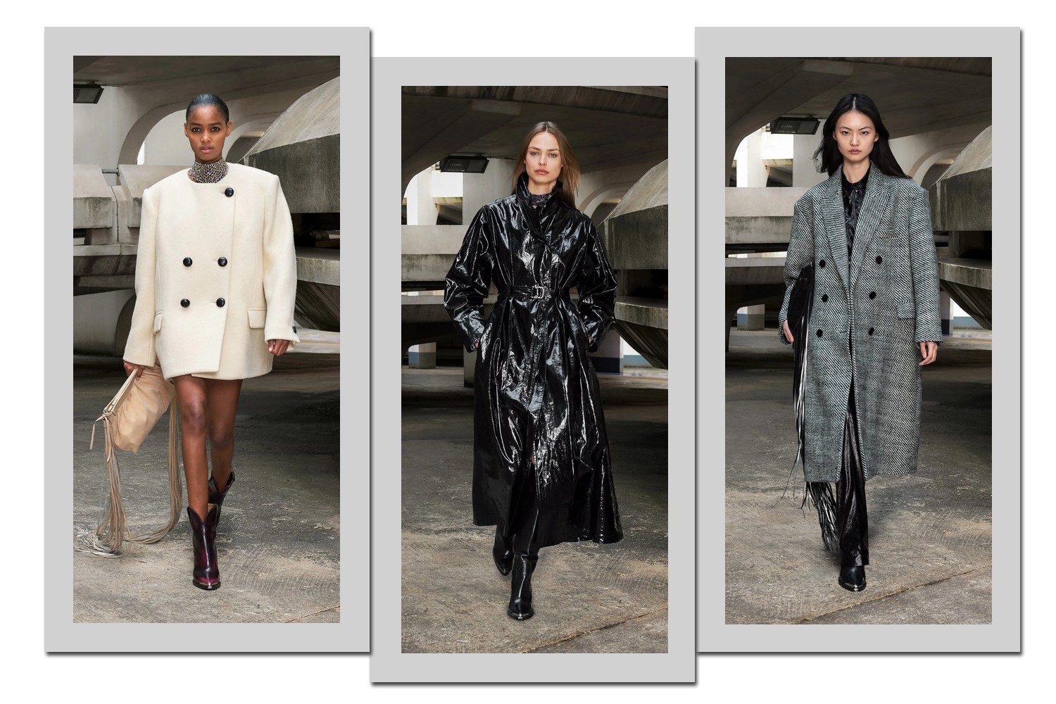 Para a coleção de inverno da Isabel Marant, não poderiam faltar casacos grandiosos – incluindo modelos com ombros destacadas.