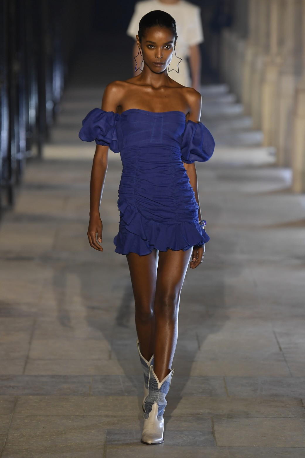 O amor está no ar neste verão 2021 da Isabel Marant. O desfile realizado nesta quinta-feira (01.10), na semana de moda de Paris, começou com uma grande performance de dança que nos remeteu às raves dos anos 1990 – inclusive no figurino dos dançarinos. O show começou com uma mensagem: looks com estampas da palavra “Love” e corações.