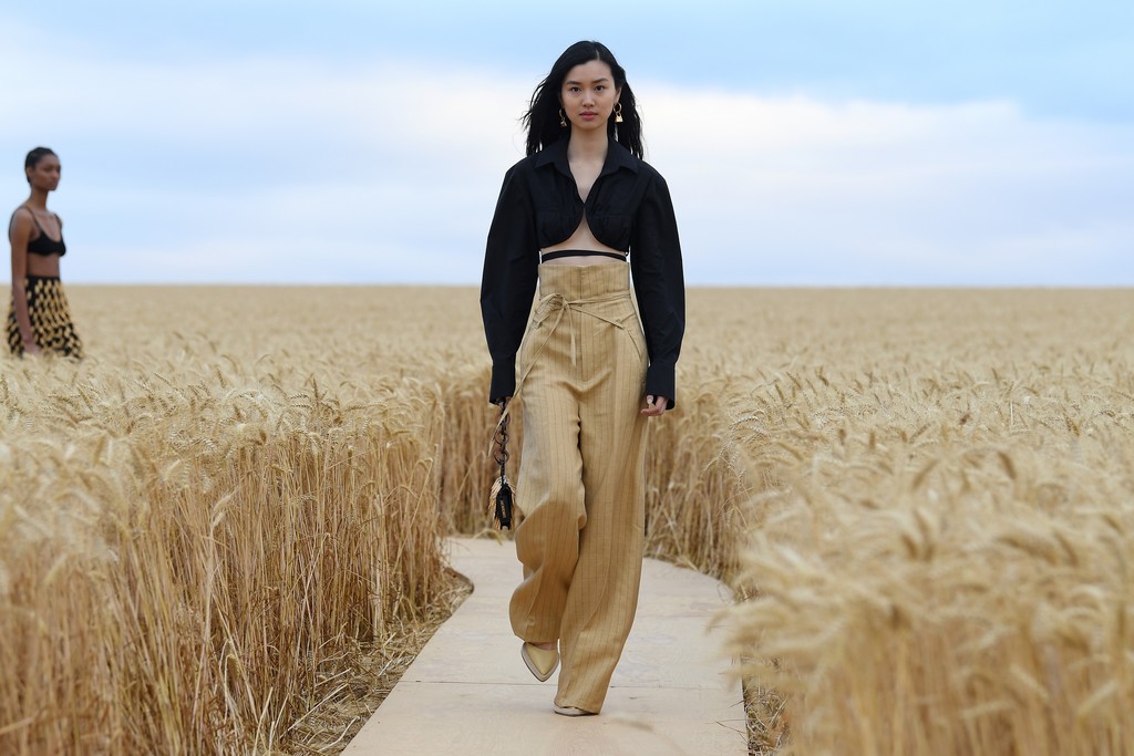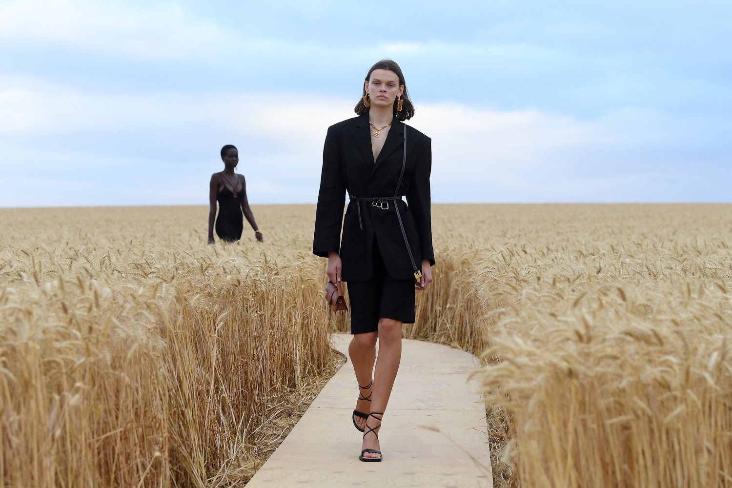 O desfile ocorreu em um campo de trigo próximo a Paris, dando continuidade à apresentação que ocorreu em uma plantação de lavandas.