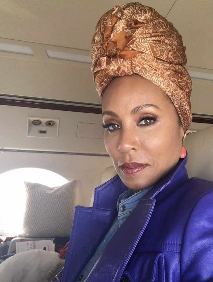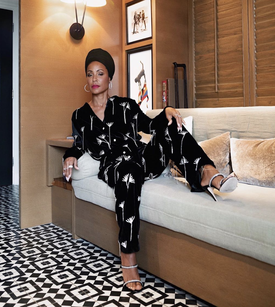 De turbante, Jada arrasa! Não existe nada mais puro em informação de moda do que o acessório. E a dica da atriz é: não tenha medo de combinar a peça estampada com outras cores e estilo de roupas. Desta maneira, você garante personalidade.