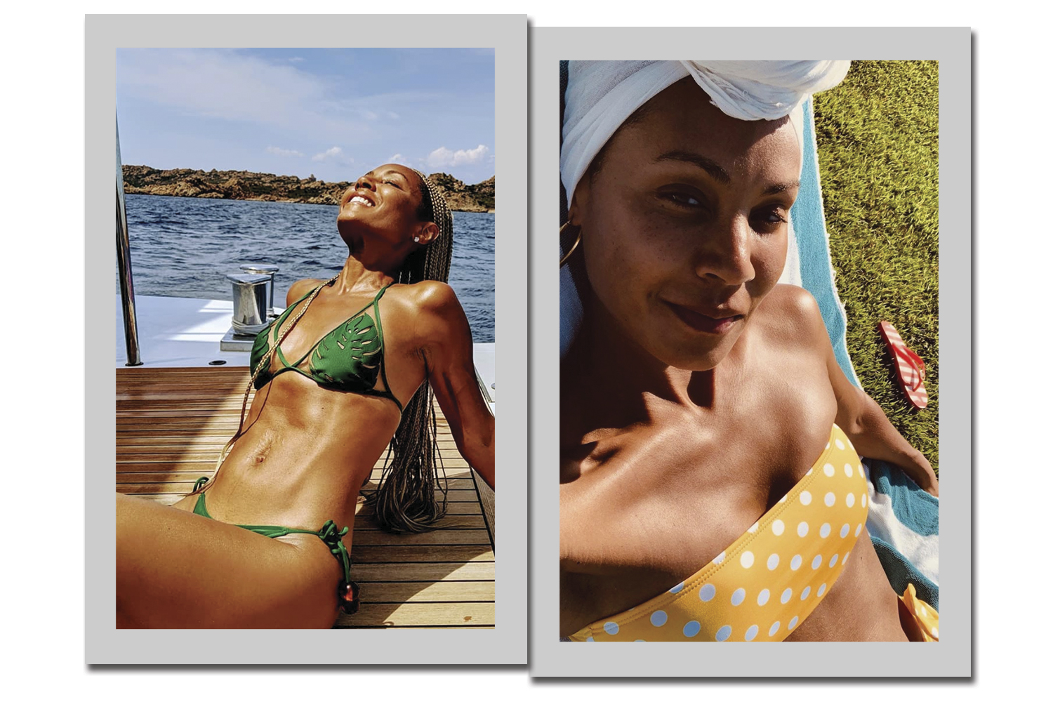 Para a praia, Jada aposta em peças divertidas. O biquíni verde bandeira tem transparência e é montado a partir de uma aplicação em outro tecido, em forma de folha. E o tomara que caia de poá brancos e fundo amarelo é a cara do verão!