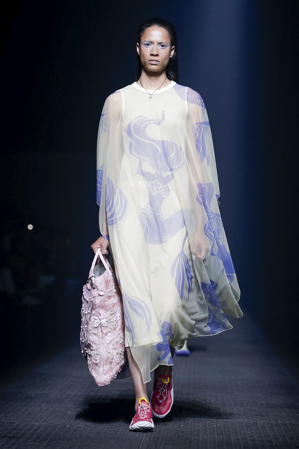 A capa transparente adiciona movimento ao desfile.